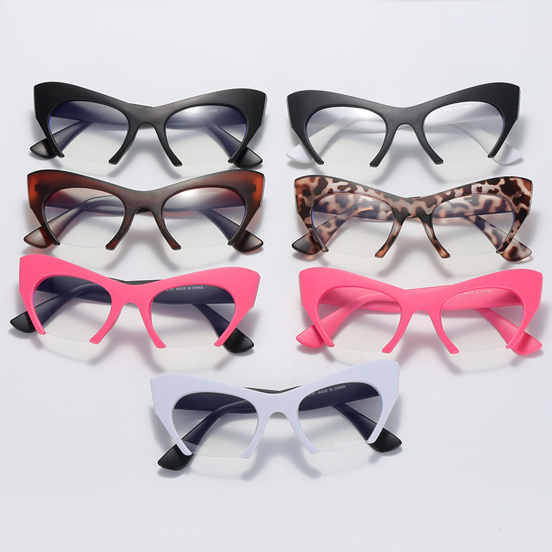 2021速卖通半框猫眼个性框架平光眼镜 潮男女款街拍太阳眼镜墨镜