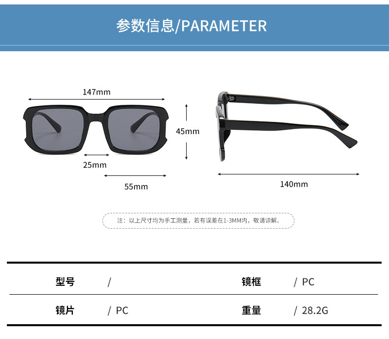 秋季新品墨镜女个性风潮大框方框不规则太阳镜外销防紫外线眼镜女 投诉