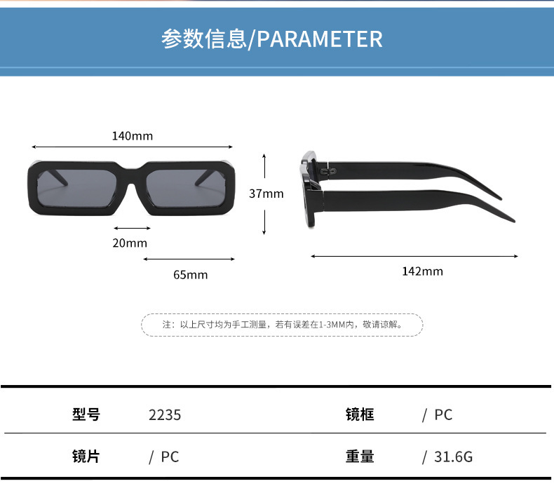 新款个性细长方框太阳镜时尚穿搭豹纹多色太阳眼镜2235欧美风墨镜 投诉