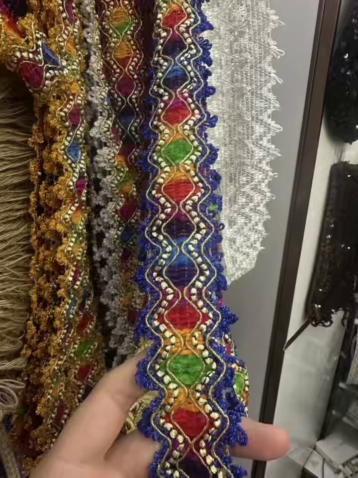 民族风彩色刺绣带珠花边 亮片织带 少数民族服饰窗帘 DIY 装饰辅料厂家批发