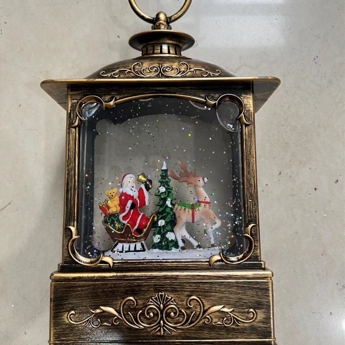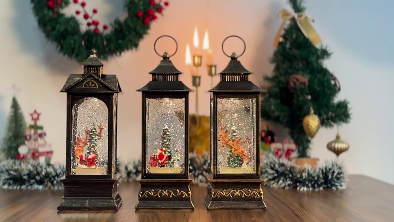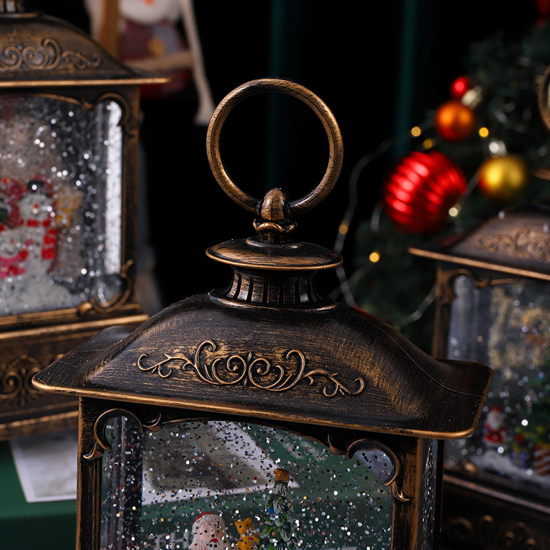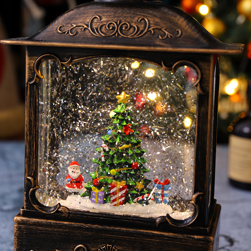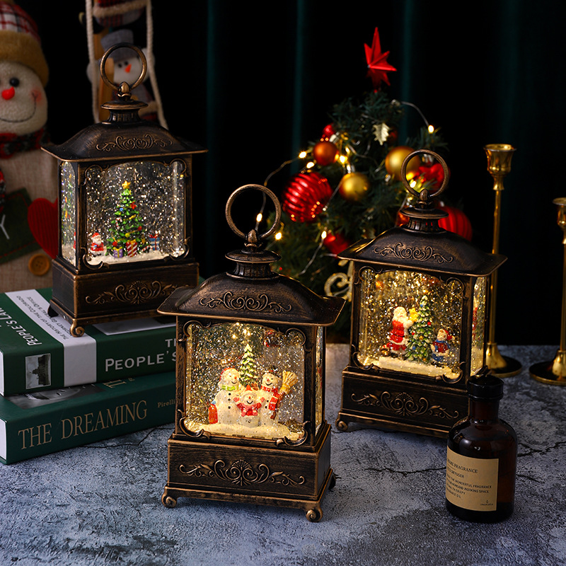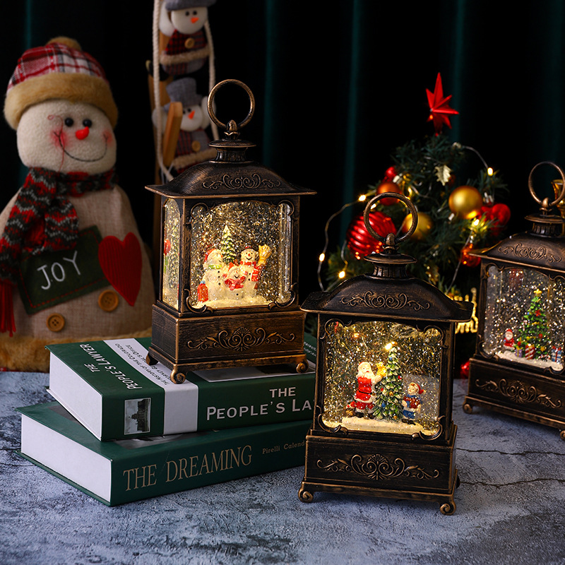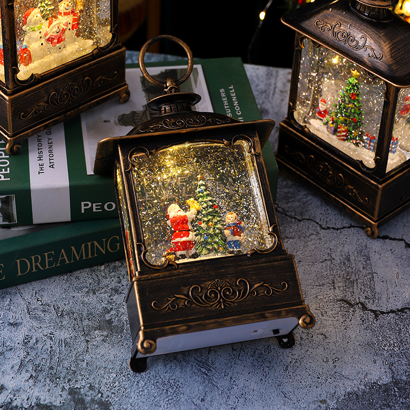 圣诞装饰品圣诞风灯圣诞老人打水扁灯发光带音乐复古桌面手提摆件 English | 投诉