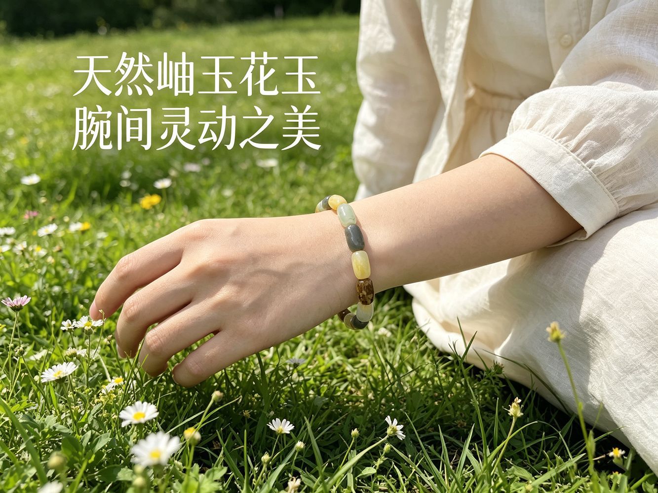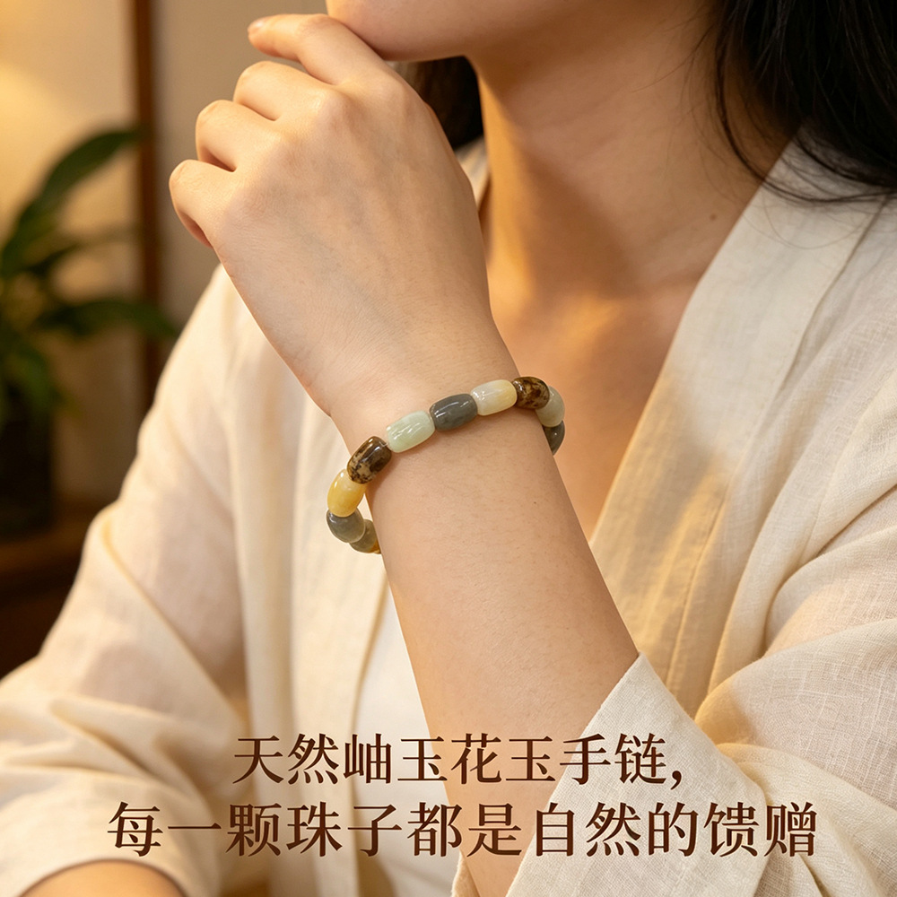 天然岫玉花玉多彩手排手链男女式手串七夕情人节送女友礼物11*7mm
