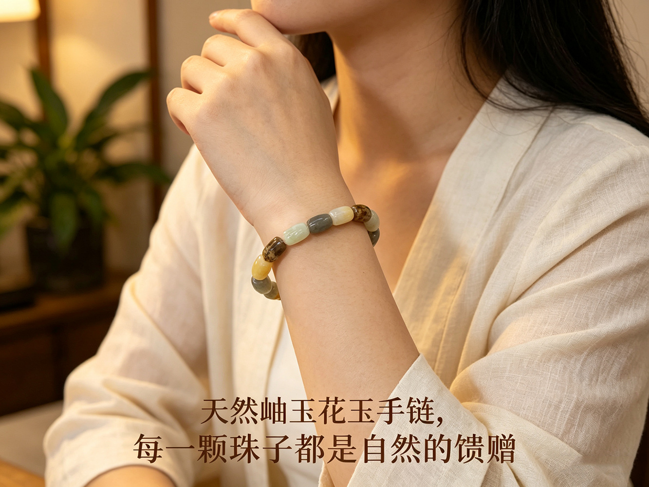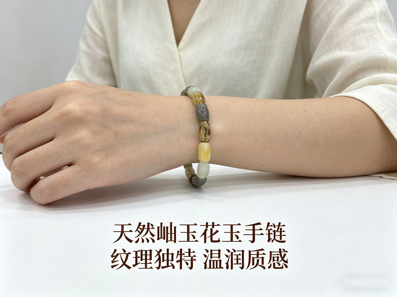 天然岫玉花玉多彩手排手链男女式手串七夕情人节送女友礼物11*7mm 投诉
