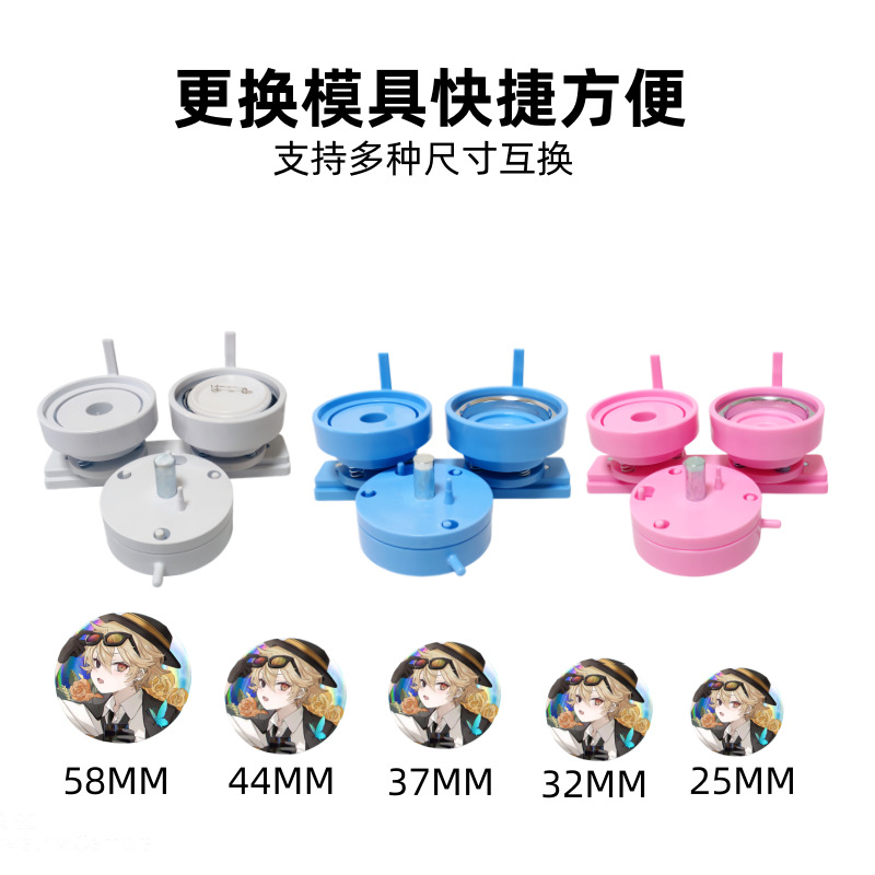 产品配套:套装默认带机器模具1套,选配塑料吧唧材料100套、塑料切圆一个,收货就可以直接使用;