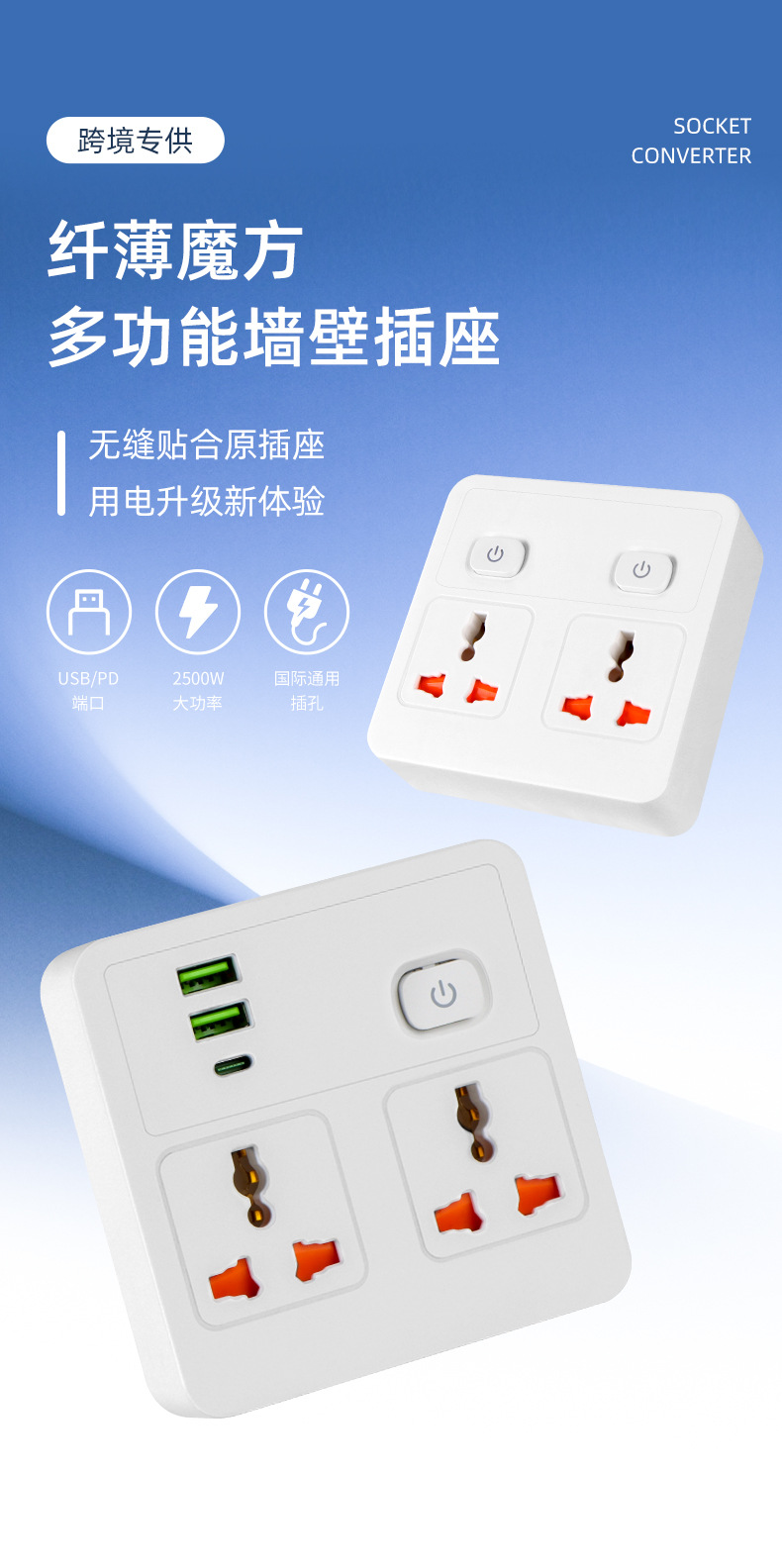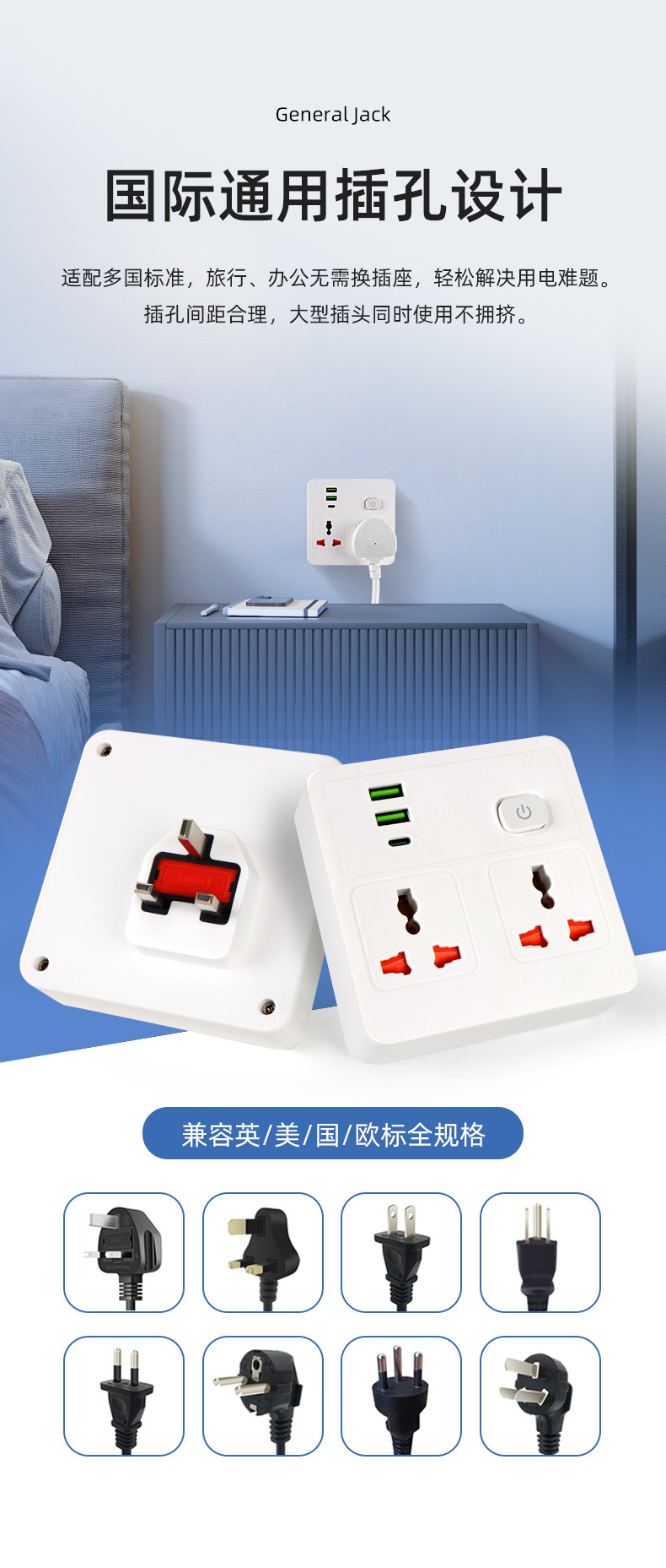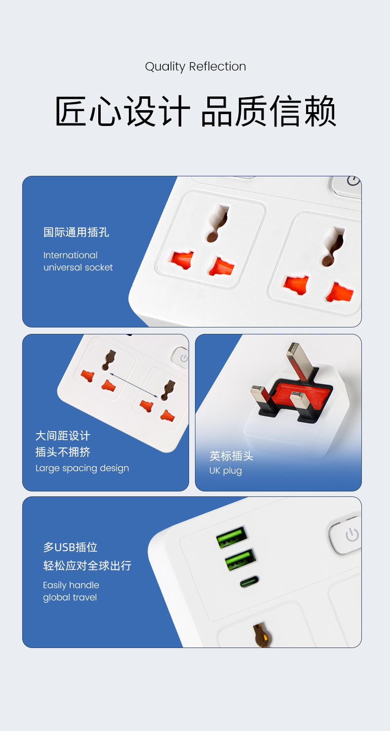 声明:本商品仅供外贸用途,不符合境内 产品标准,境内买家请勿购买国际孔插座