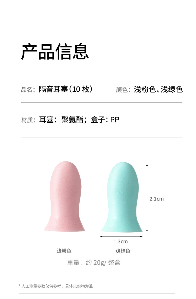 品牌: FaSoLa 种类/用途: 隔音耳塞 是否进口: 否 货号: PS-583 箱装数量: 200 产地: 中国 加印LOGO: 不可以 加工定制: 否 适用送礼场合: 广告促销 是否专利货源: 否 是否跨境出口专供货源: 否 规格: 10枚装 颜色: 浅绿色,浅粉色 产品类别: 隔音耳塞(10枚) 重量: 0.3 kg/套