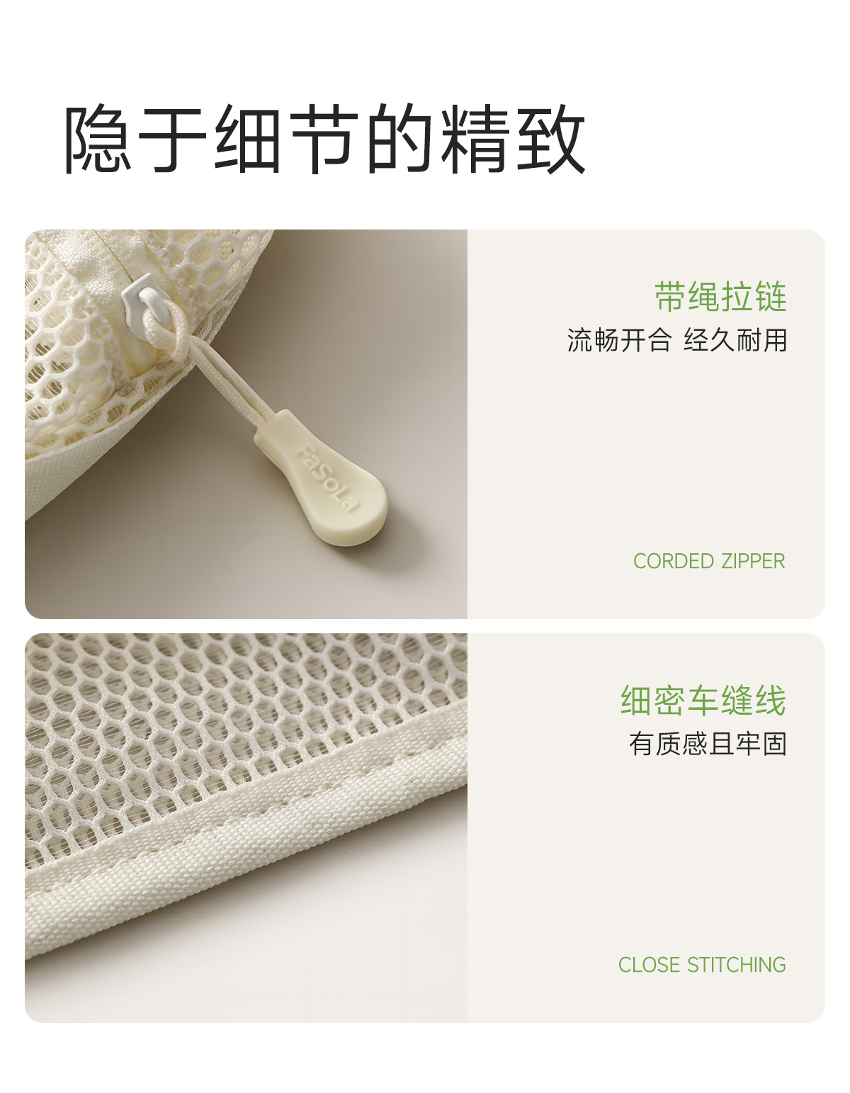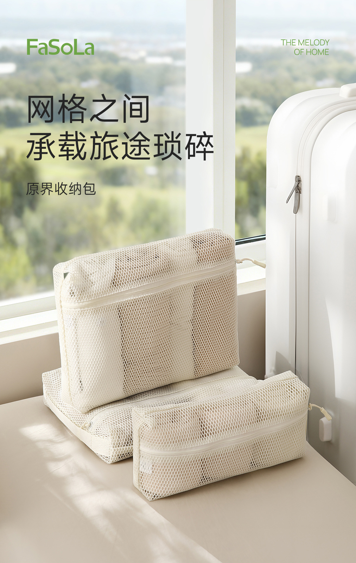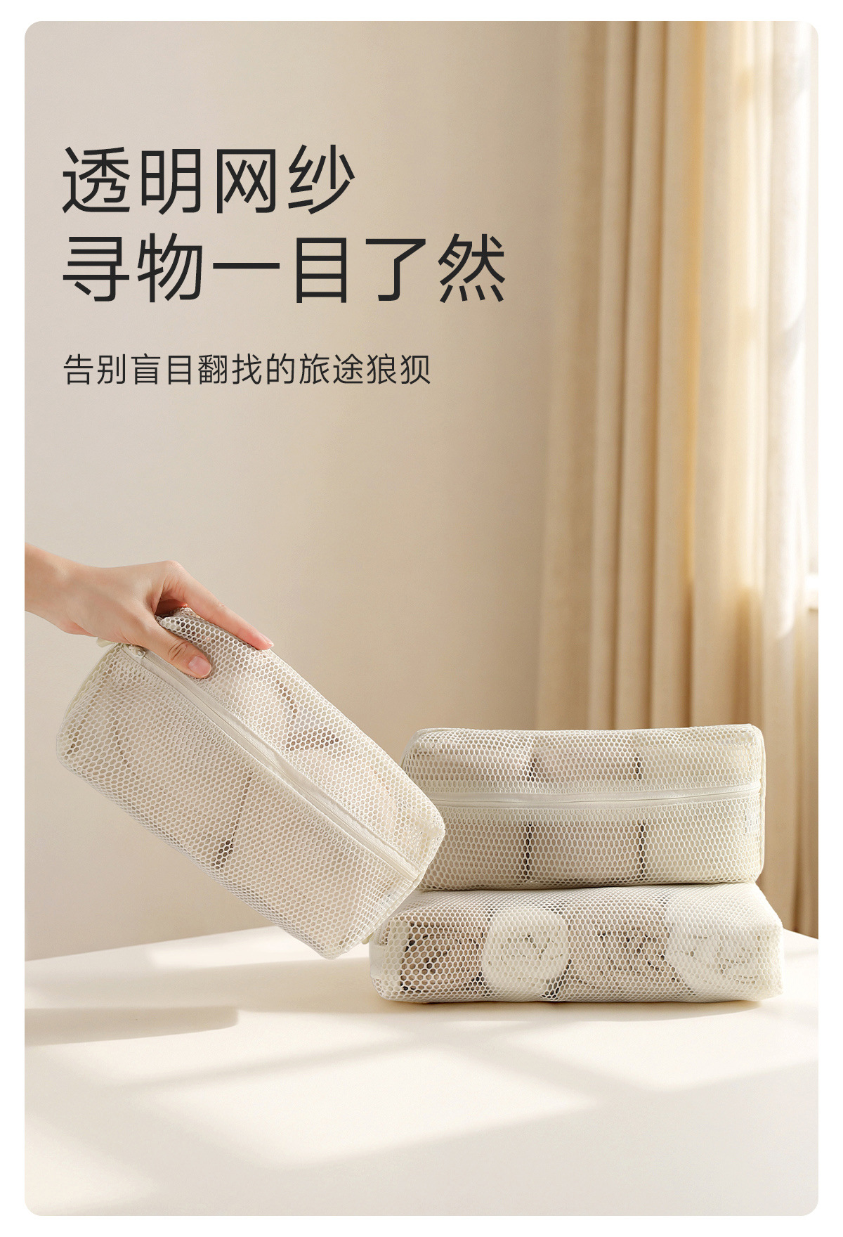 FaSoLa网纱收纳袋旅化妆包女便携式外出大容量洗漱杂物网格收纳包 English | 投诉