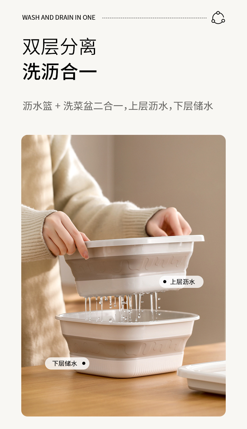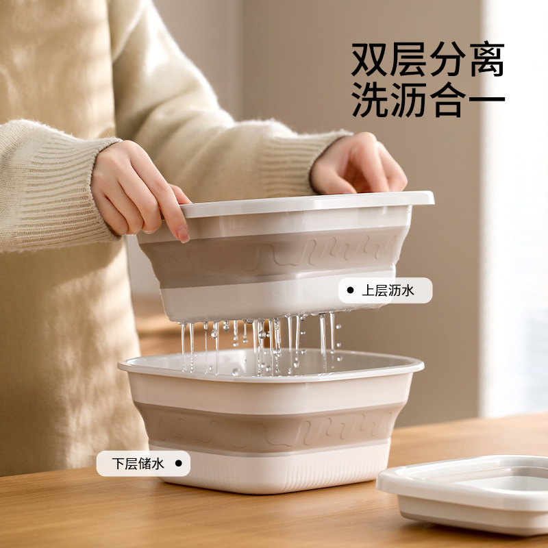 FaSoLa洗菜盆沥水篮快速折叠脸盆家用厨房双层洗水果篮子淘菜盆 English | 投诉