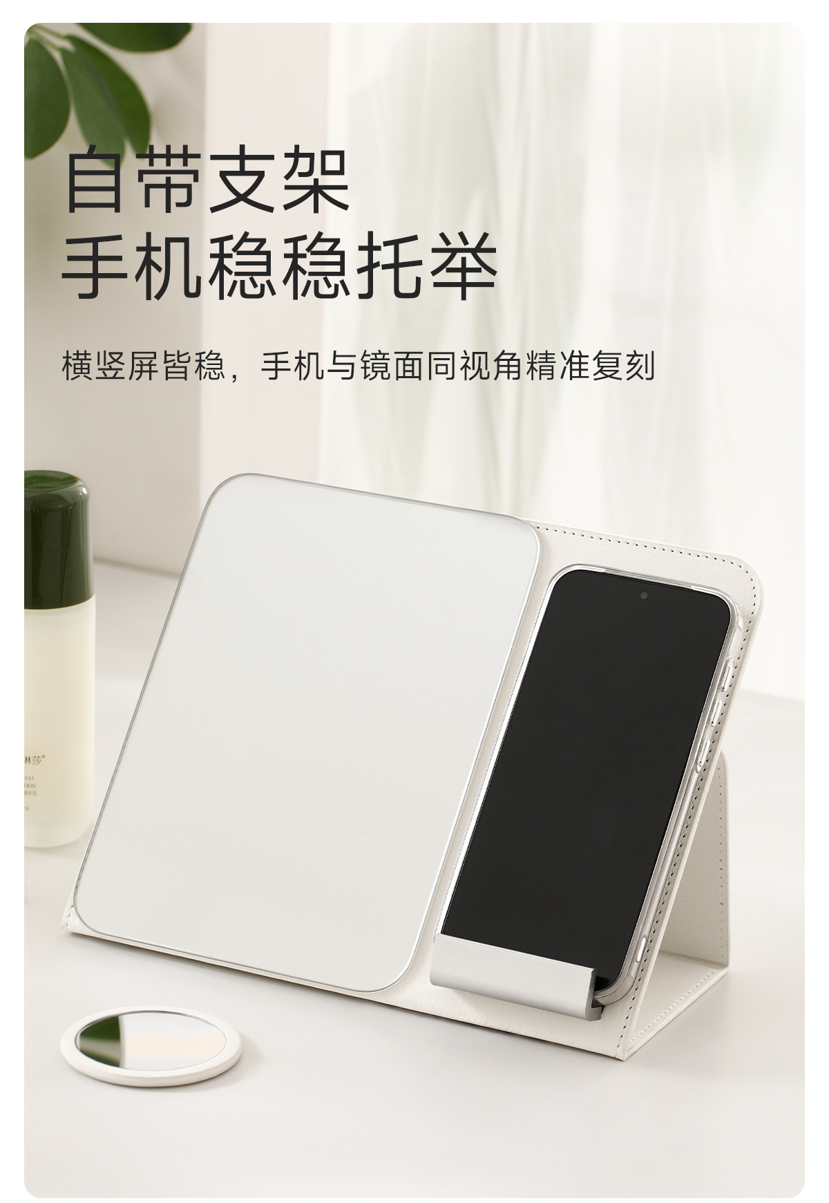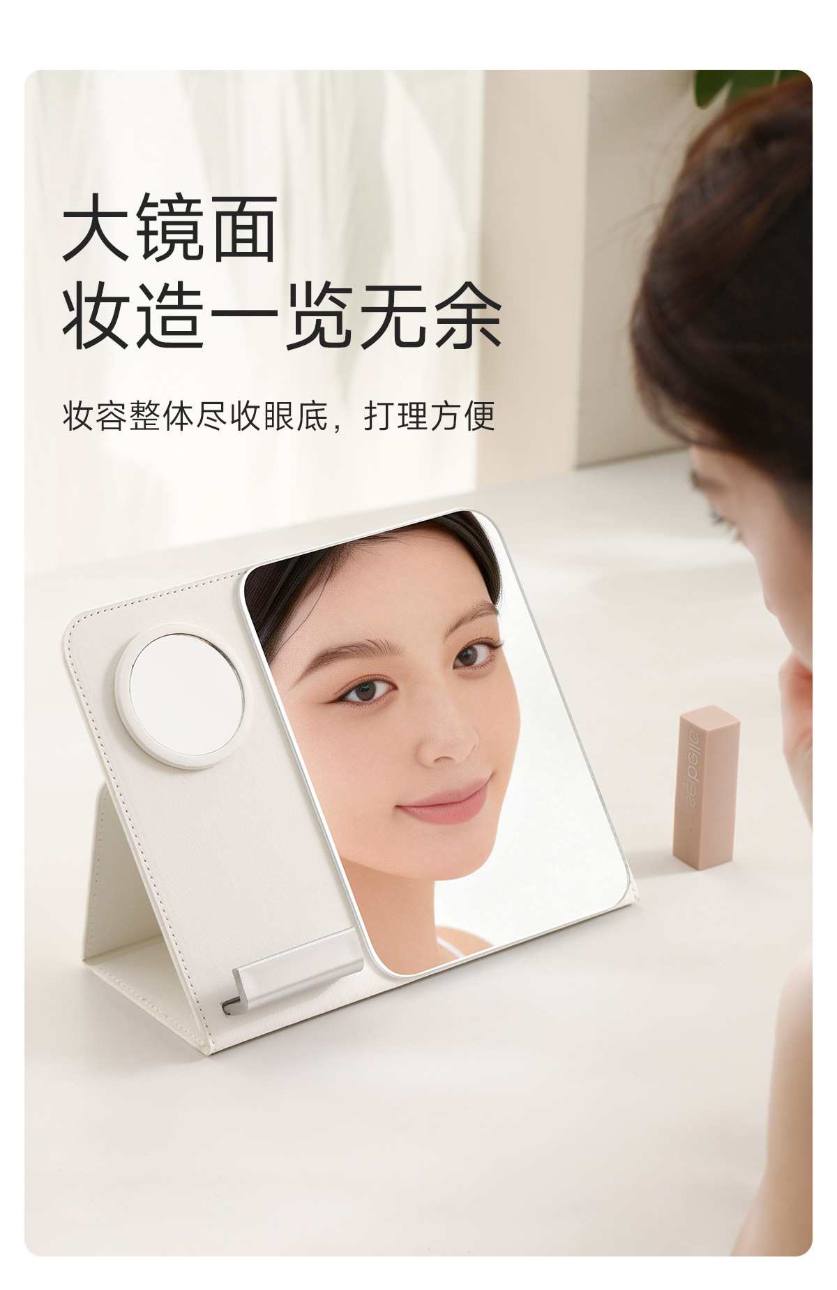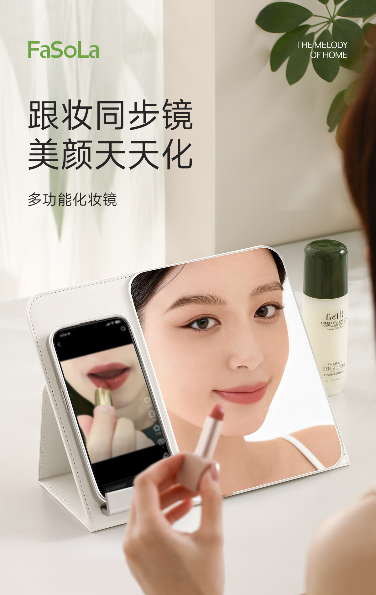 FaSoLa折叠化妆镜子学生宿舍家用桌面台式带手机支架多功能化妆镜 English | 投诉