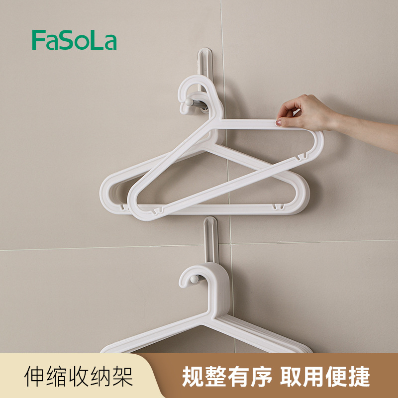 FaSoLa衣架收纳挂钩免打孔伸缩壁挂家用墙上晾放置物架伸缩收纳架