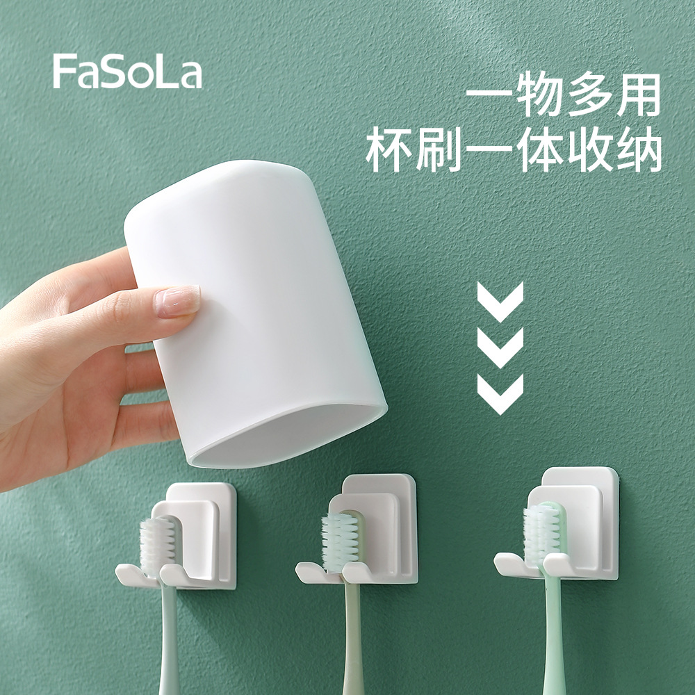 FaSoLa家用漱口杯牙刷置物架壁挂式免打孔浴室牙刷架卫生间牙具座