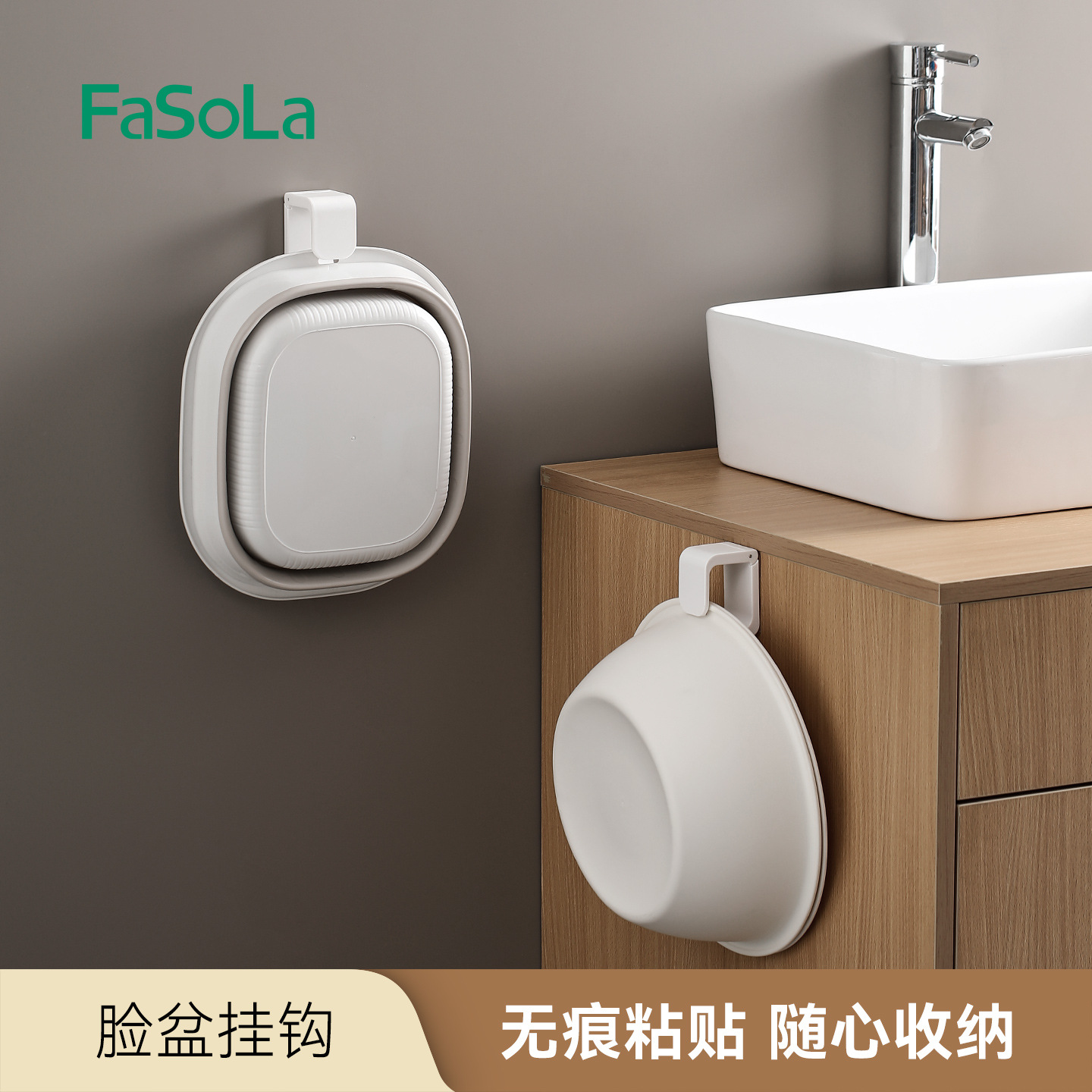 FaSoLa浴室挂盆神器免打孔洗澡浴盆壁挂式收纳架卫生间脸盆挂钩