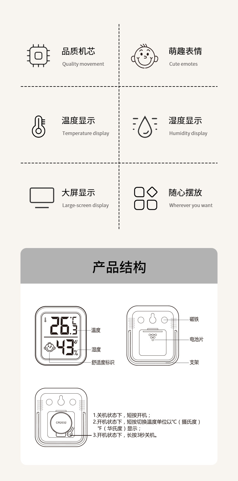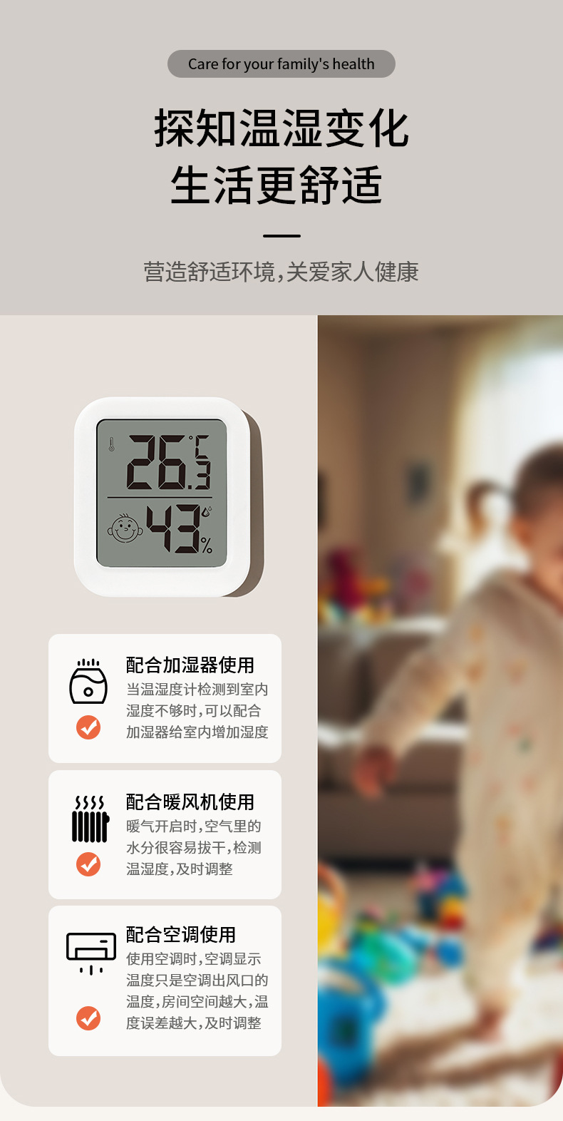 FaSoLa气温电子显示器室内温度计婴儿房高精度小巧灵敏温湿度计 English | 投诉