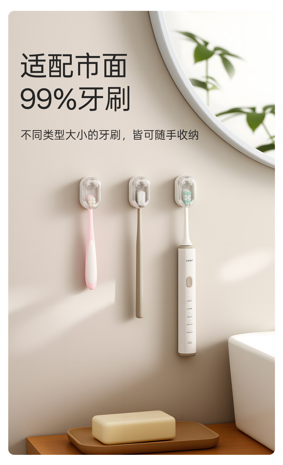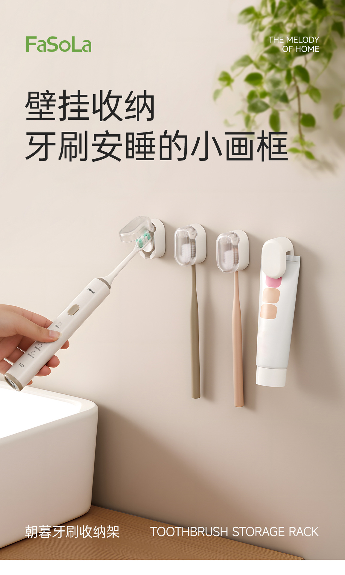 FaSoLa牙刷置物架卫生间免打孔防尘带盖牙刷挂架壁挂式电动牙刷架 English | 投诉