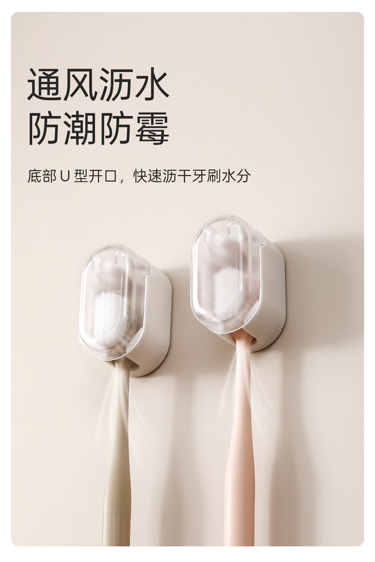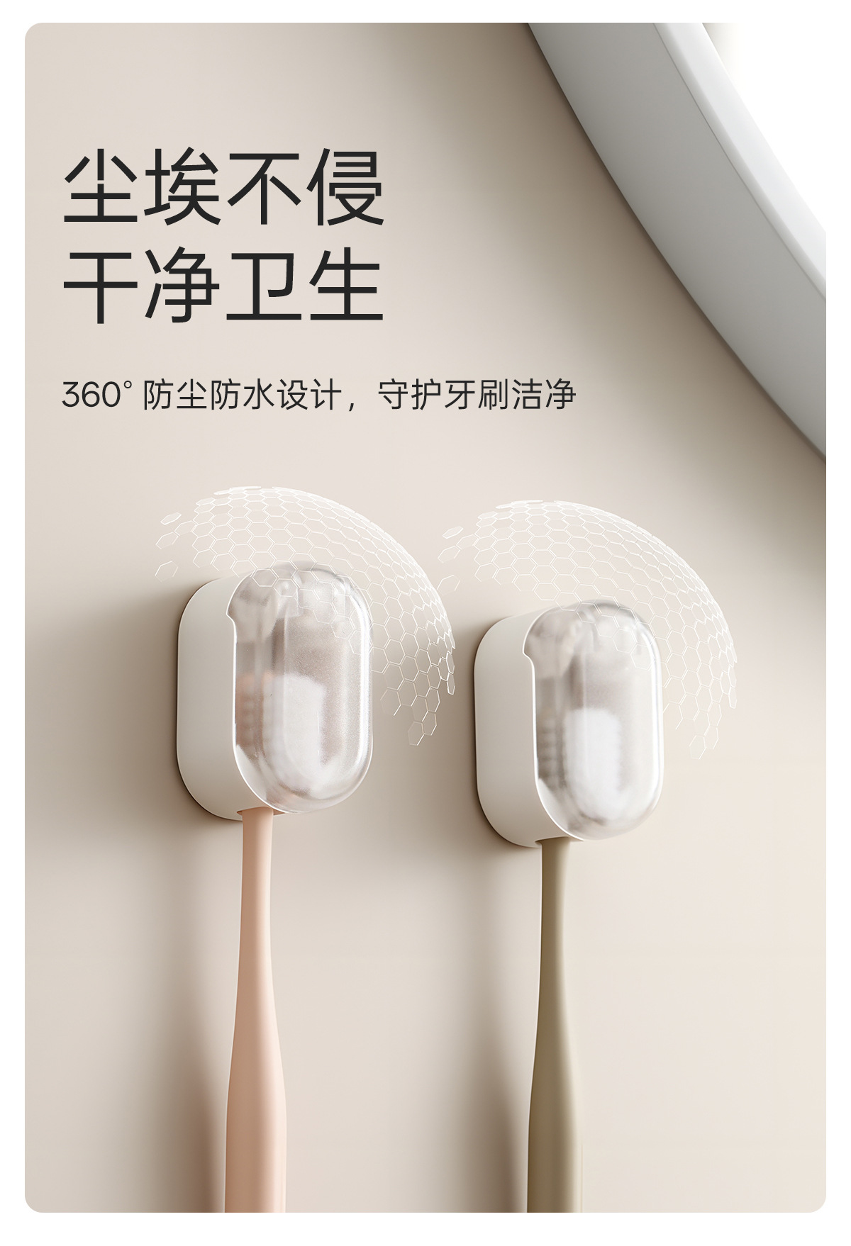 FaSoLa牙刷置物架卫生间免打孔防尘带盖牙刷挂架壁挂式电动牙刷架