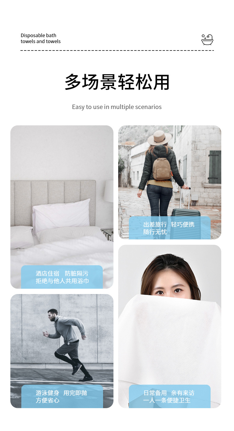 FaSoLa旅行一次性无纺布浴巾毛巾加大加厚旅游酒店情侣洗浴浴巾 English | 投诉