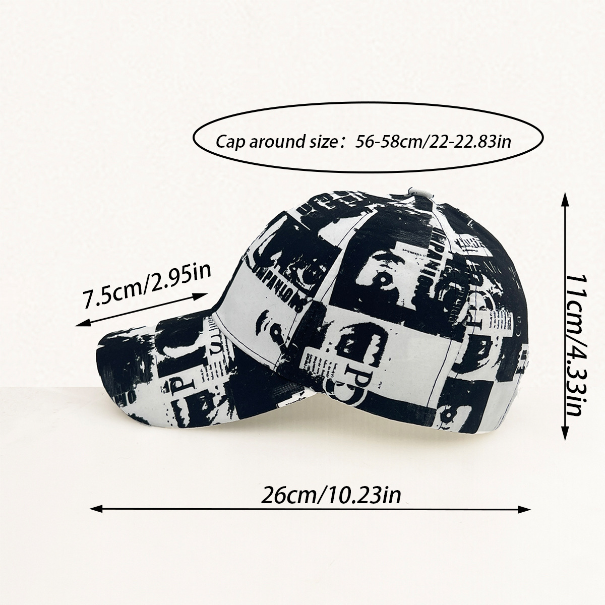 【品名】:跨境temu希音新款涂鸦印花棒球帽男女户外防风防晒帽子
