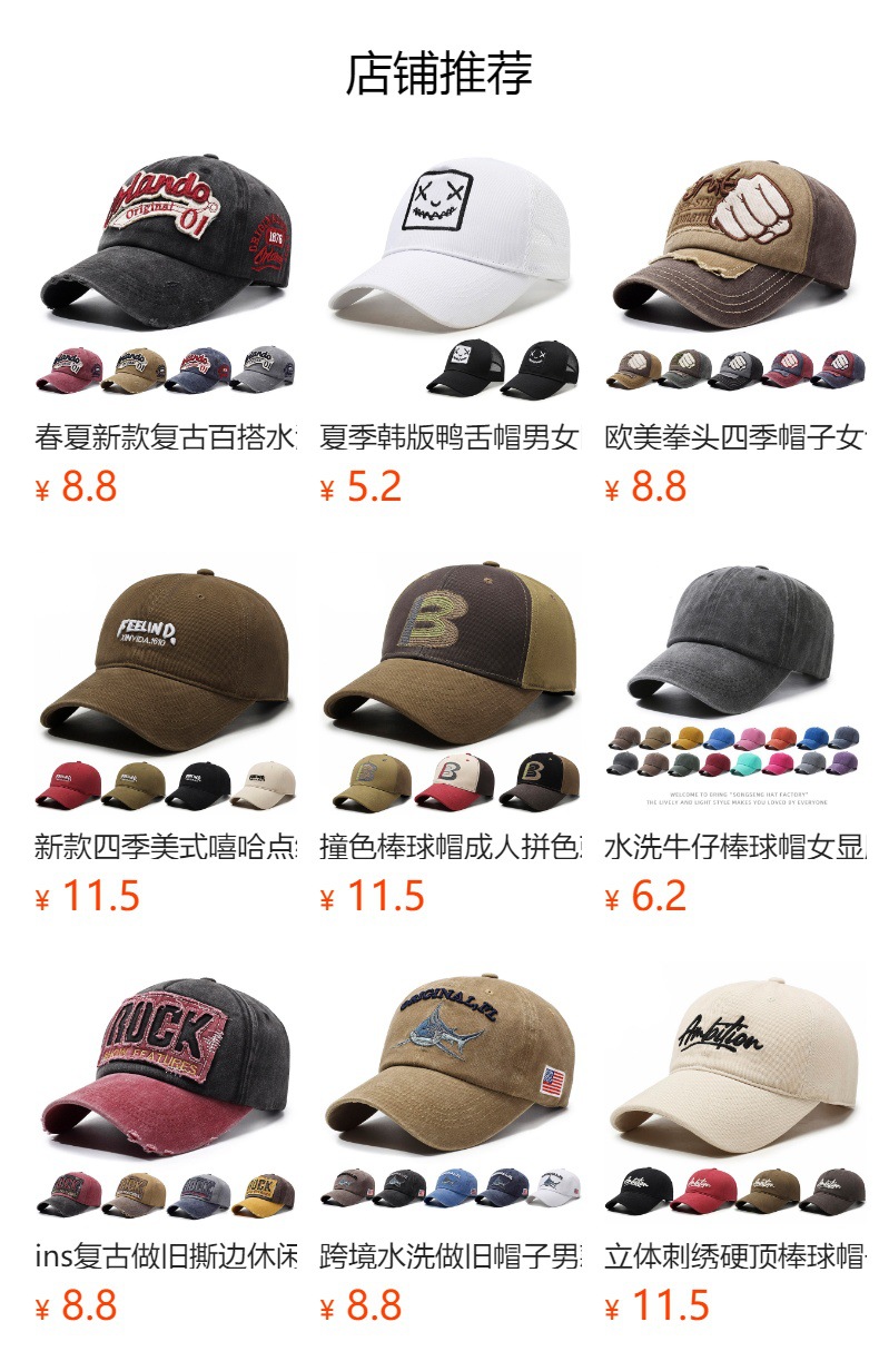本店是专业棒球帽实体工厂店,拥有 15 年以上棒球帽生产、销售与产品开发经验,可定制各类款式棒球帽,支持小批量定制,欢迎来图、来样洽谈 OEM 定制合作,品质靠谱、交期稳定!