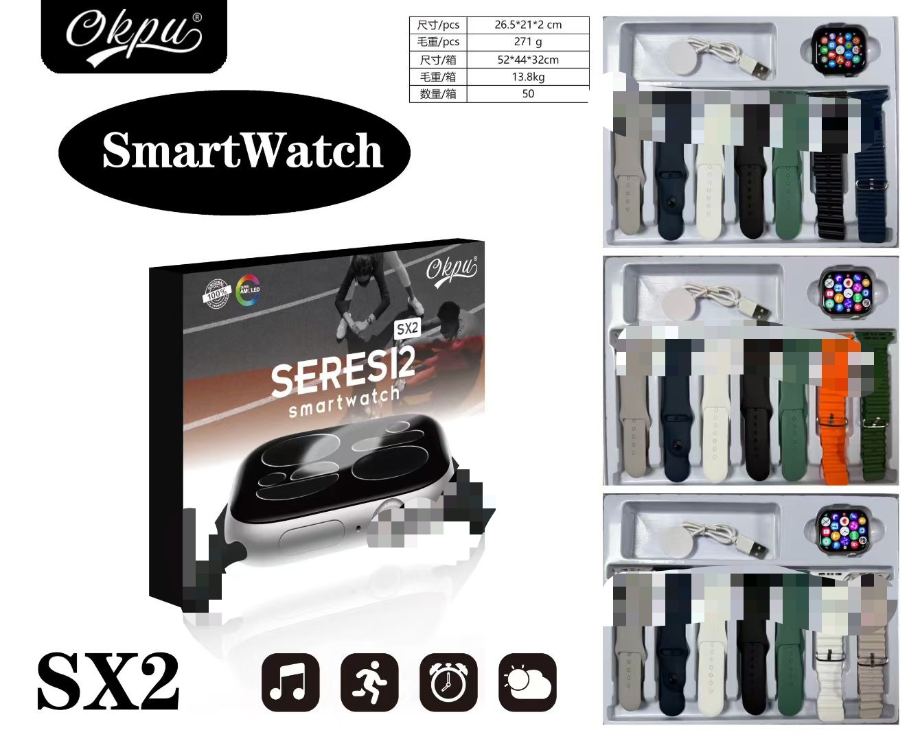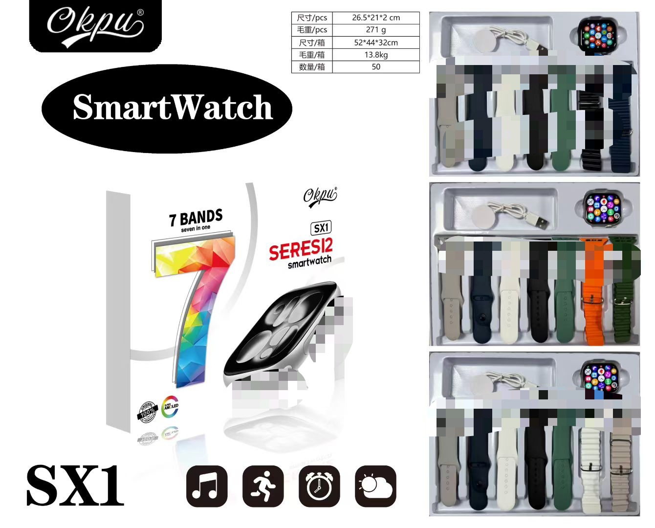 跨境爆款SX1 S11S12智能手表套装7in1心率蓝牙通话计运动手表