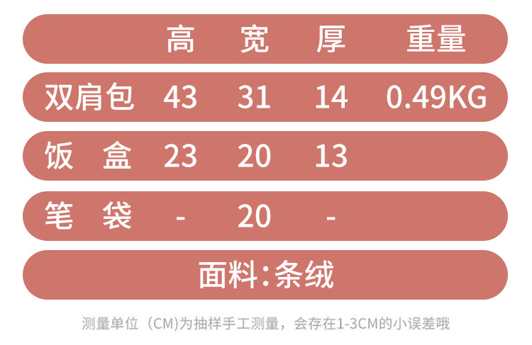 | 双肩包+带饭包+笔袋 | ¥0 | 1000套可售 |