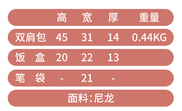 | 双肩包+手提包+笔袋 | ¥0 | 10938套可售 |
