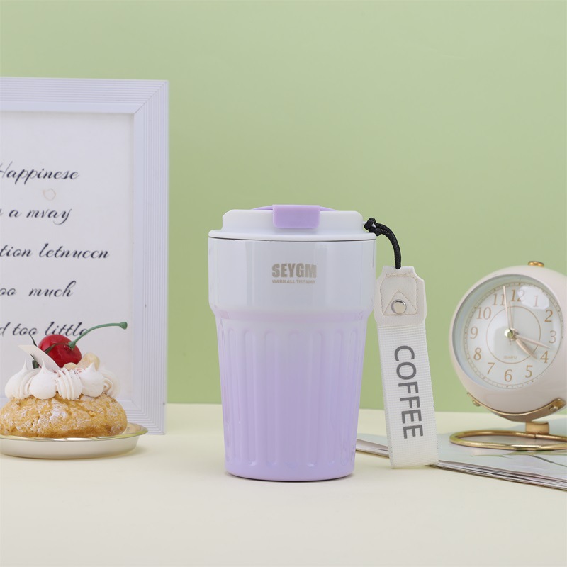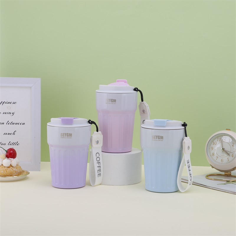 渐变条纹咖啡杯竖纹休闲水杯高颜值杯子双层不锈钢真空保温杯批发 投诉