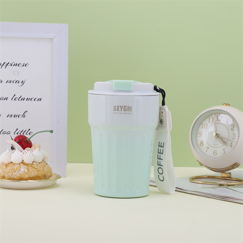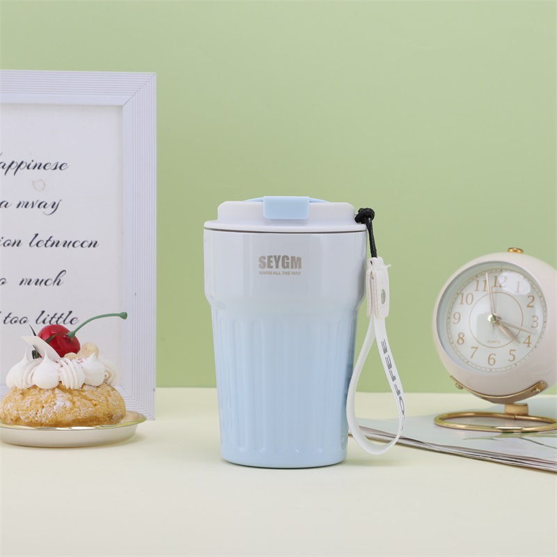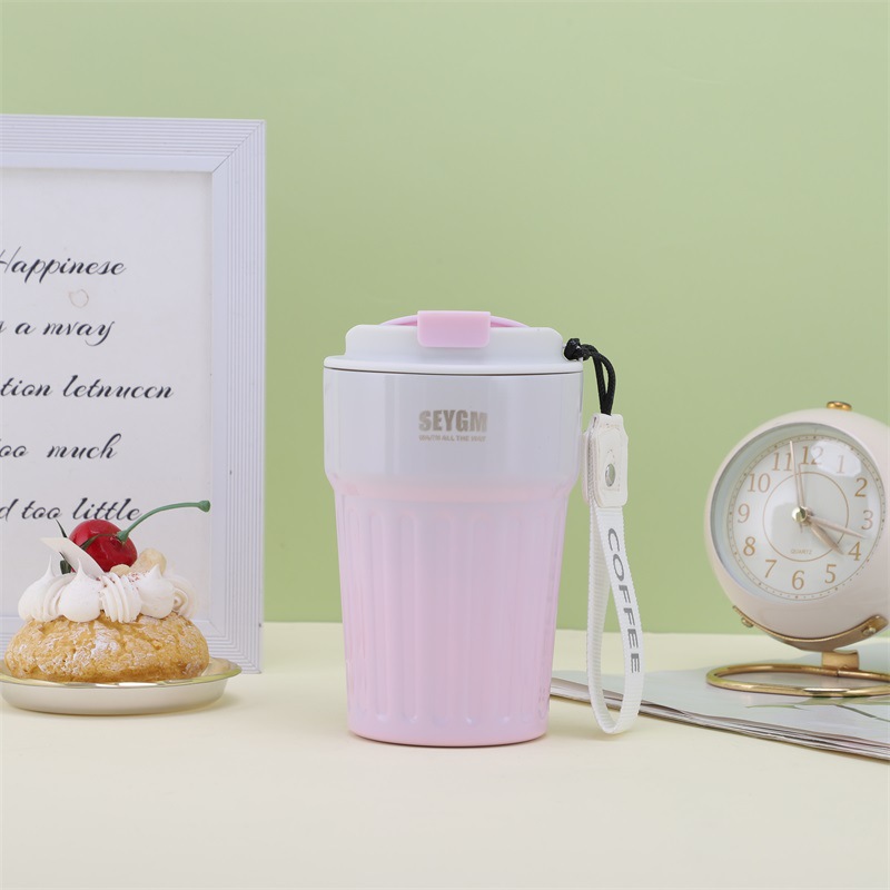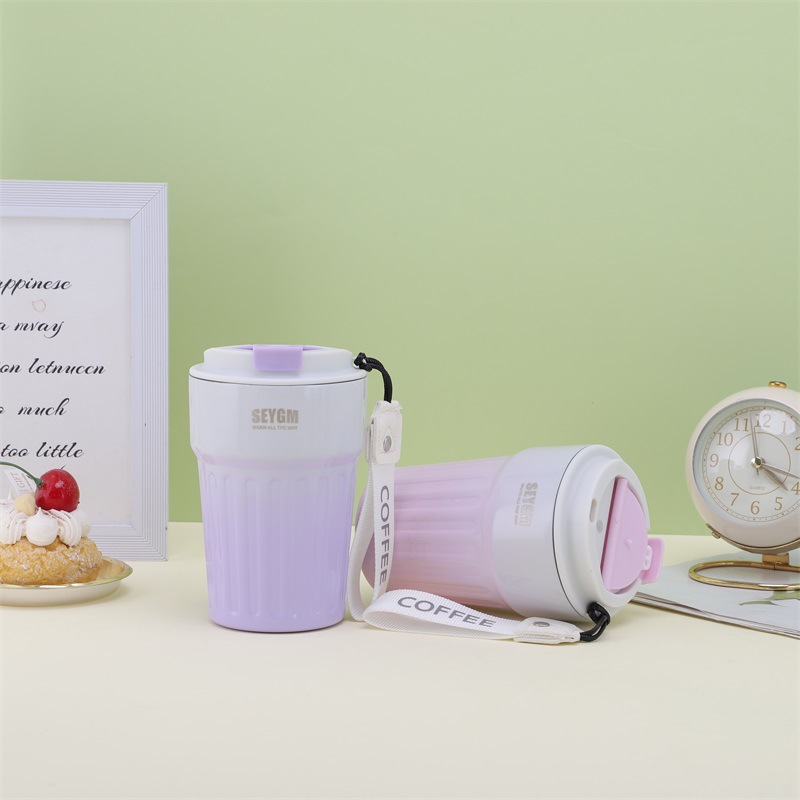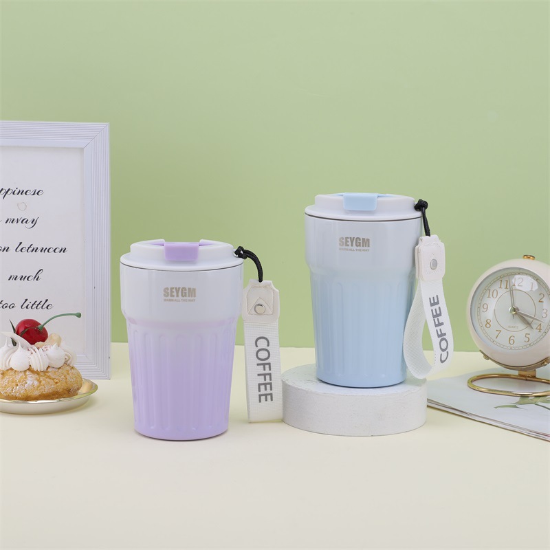 渐变条纹咖啡杯竖纹休闲水杯高颜值杯子双层不锈钢真空保温杯批发