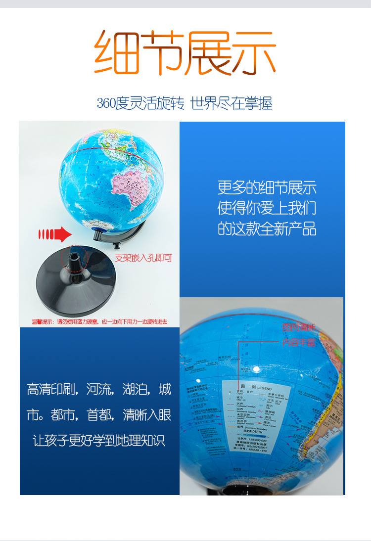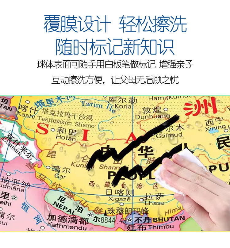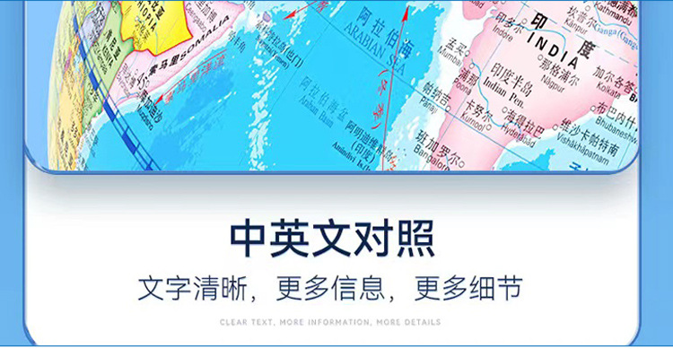 防水地球仪106mm标准教学研究高清 经典中文和英文地形办公摆件 投诉