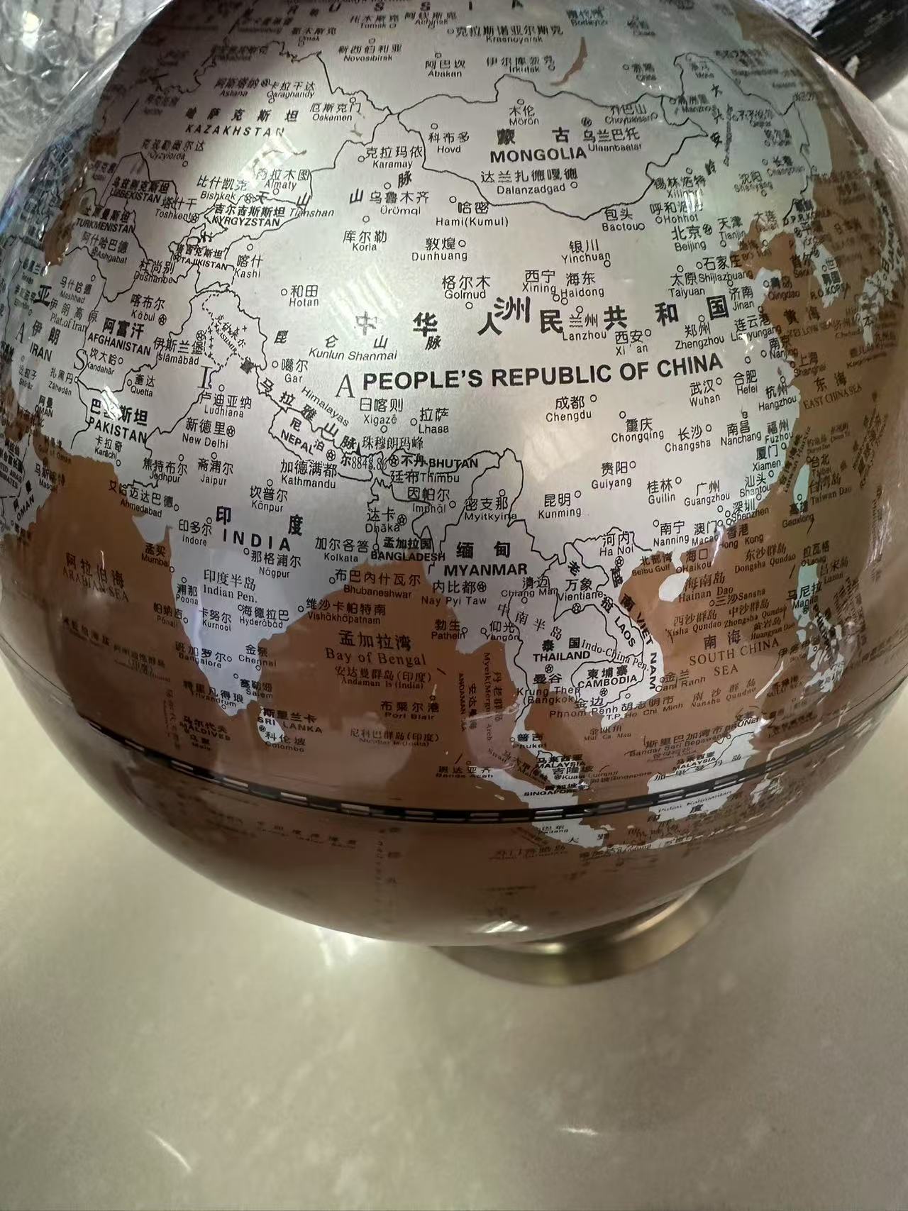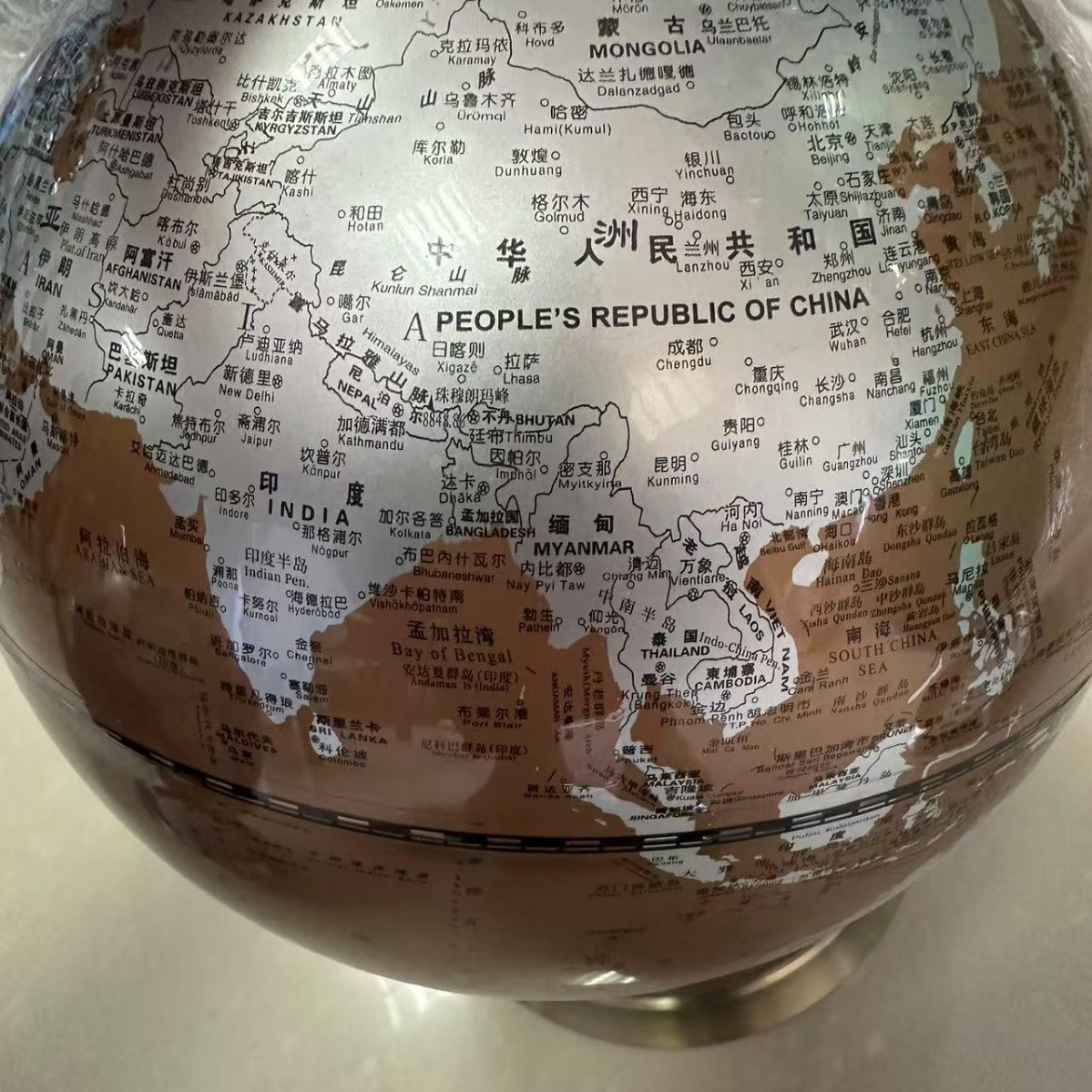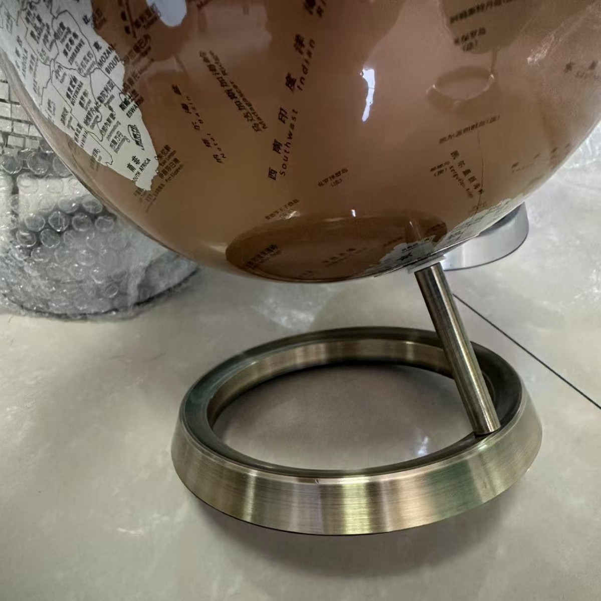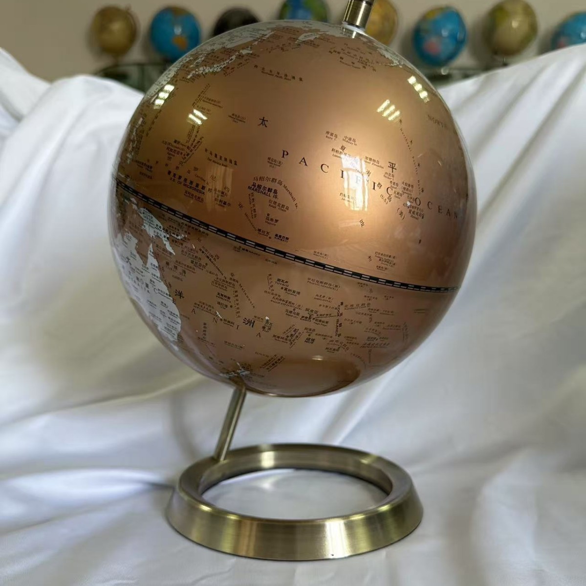 金属棕色英文高清20cm地球仪地理学生办公室轻奢高档家居装饰品摆 投诉
