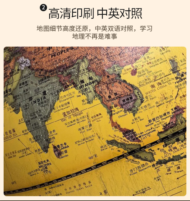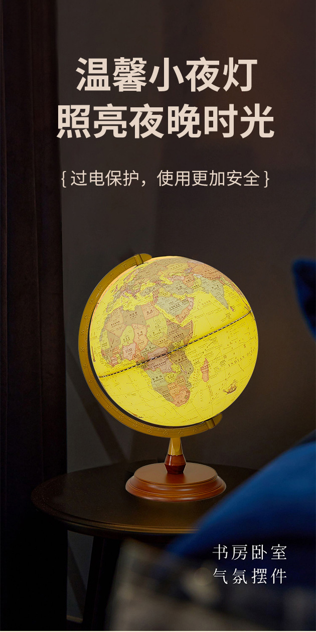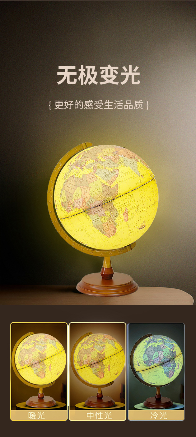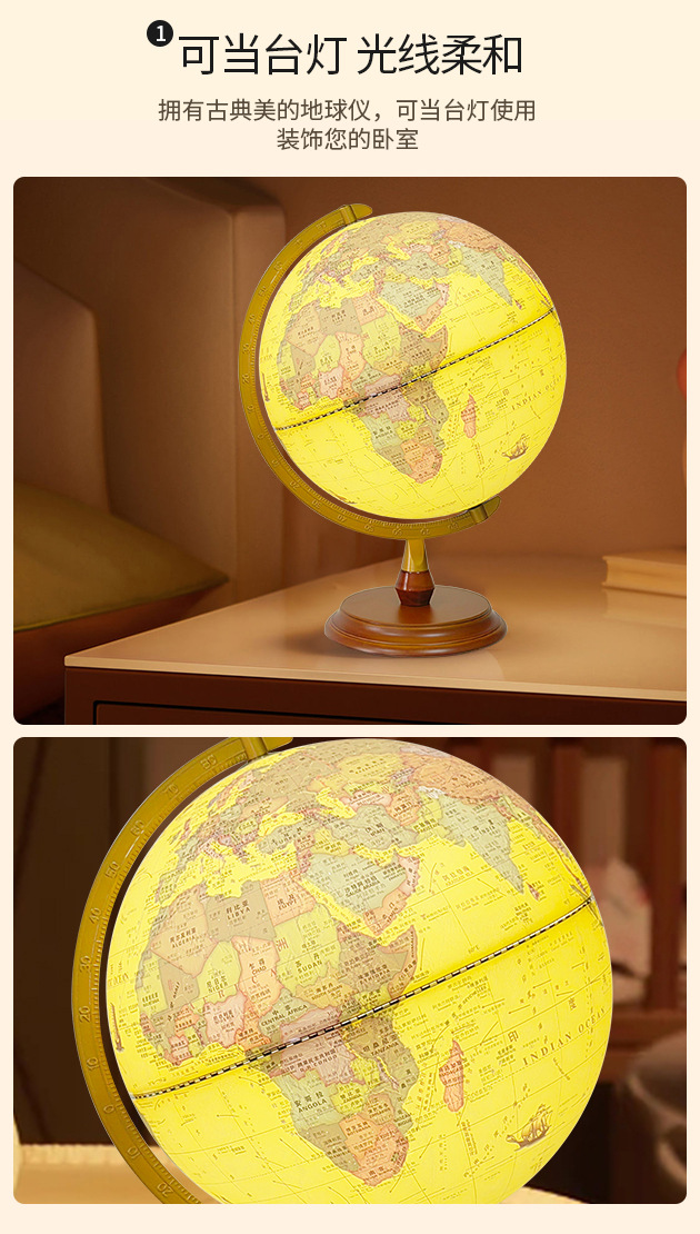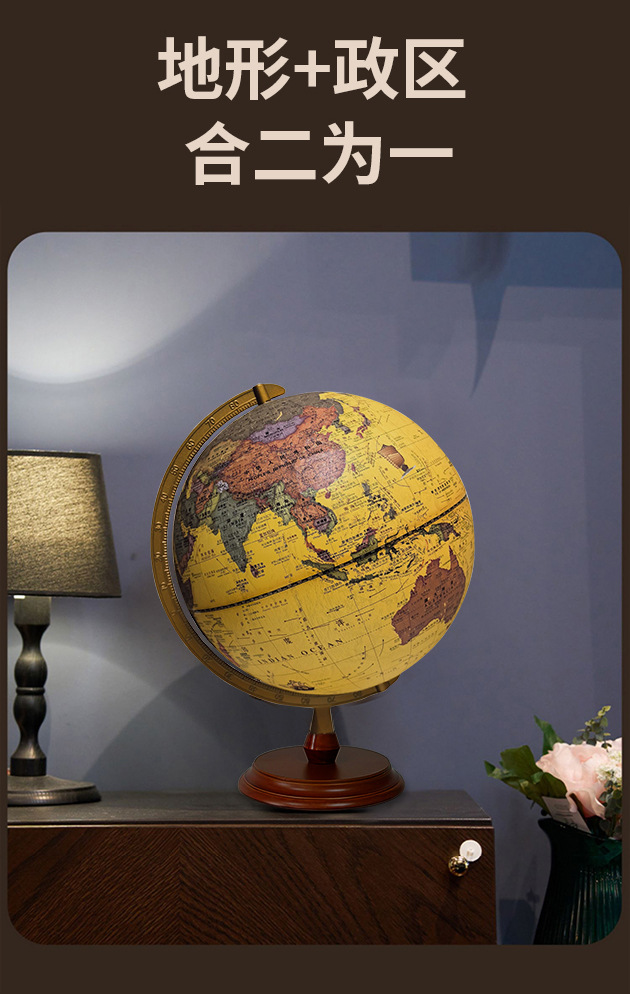 30CM高清仿古浮雕地球仪充电三色灯带AR功能送两张地图学生家用摆