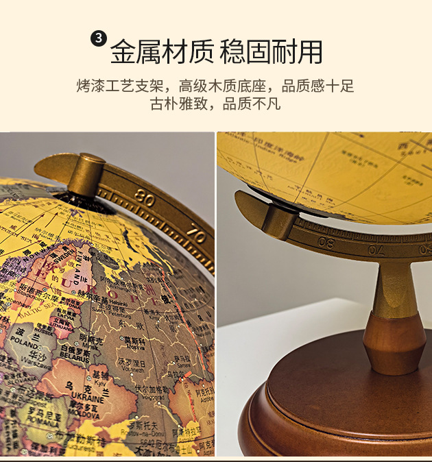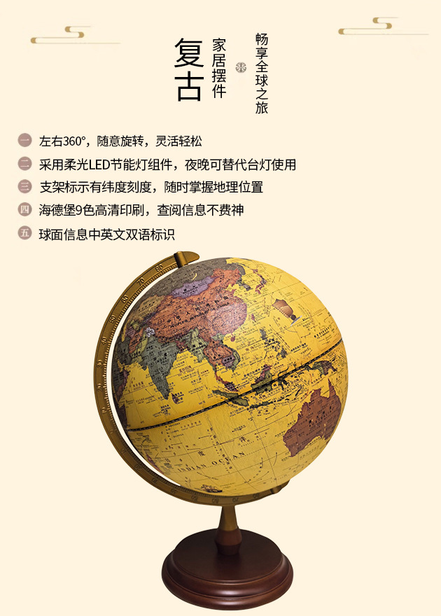 30CM高清仿古浮雕地球仪充电三色灯带AR功能送两张地图学生家用摆 投诉