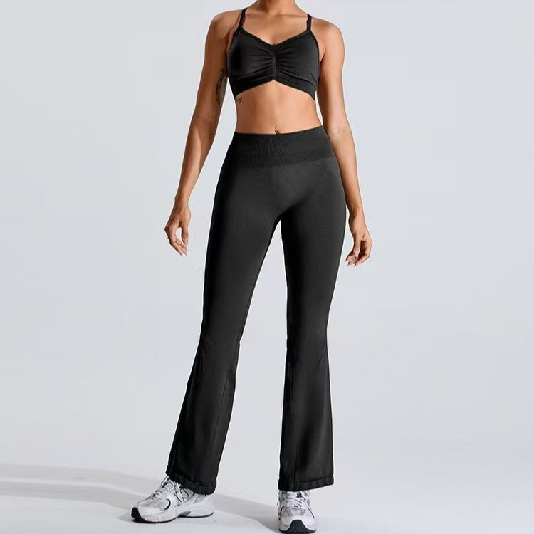 【工厂定制】跨境欧美微喇裤紧身女立体高弹提臀瑜伽健身运动裤