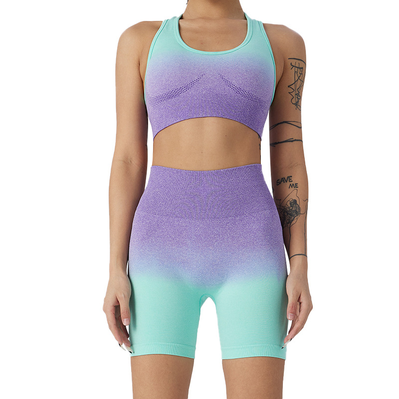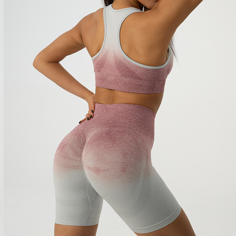 夏季网红性感潮流三分瑜伽短裤高腰紧身提臀健身跑步运动套装代发