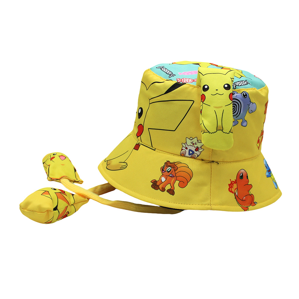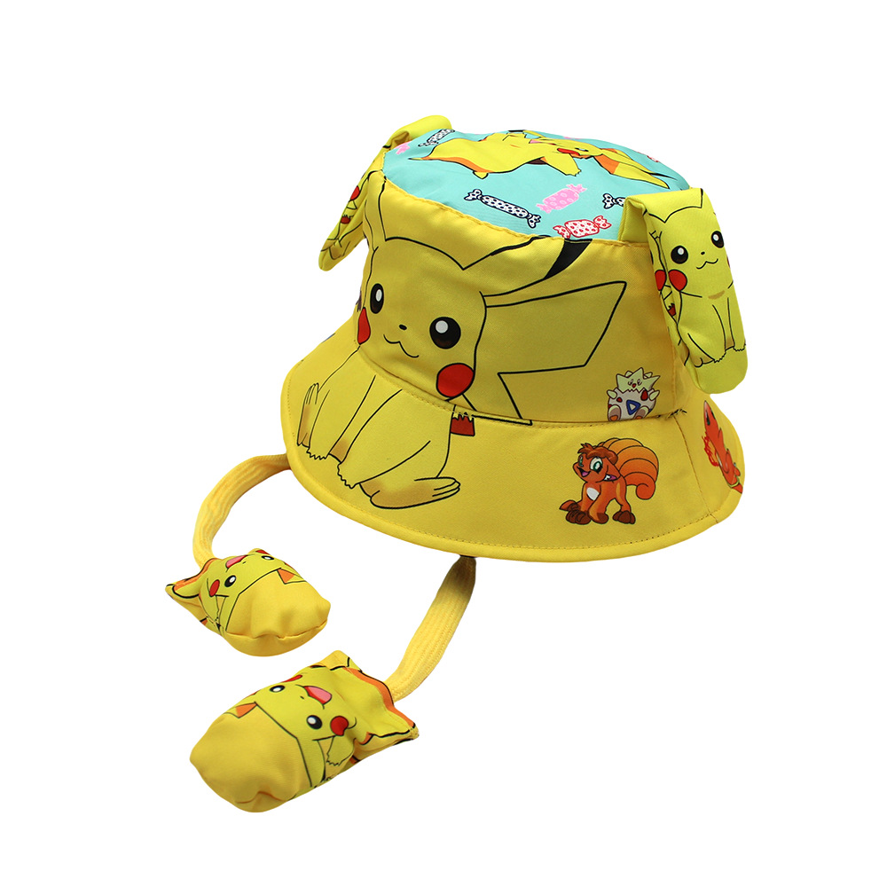 跨境新款耳朵会动气囊渔夫帽子动漫卡通蜘蛛皮卡丘小孩帽儿童盆帽 English | 投诉