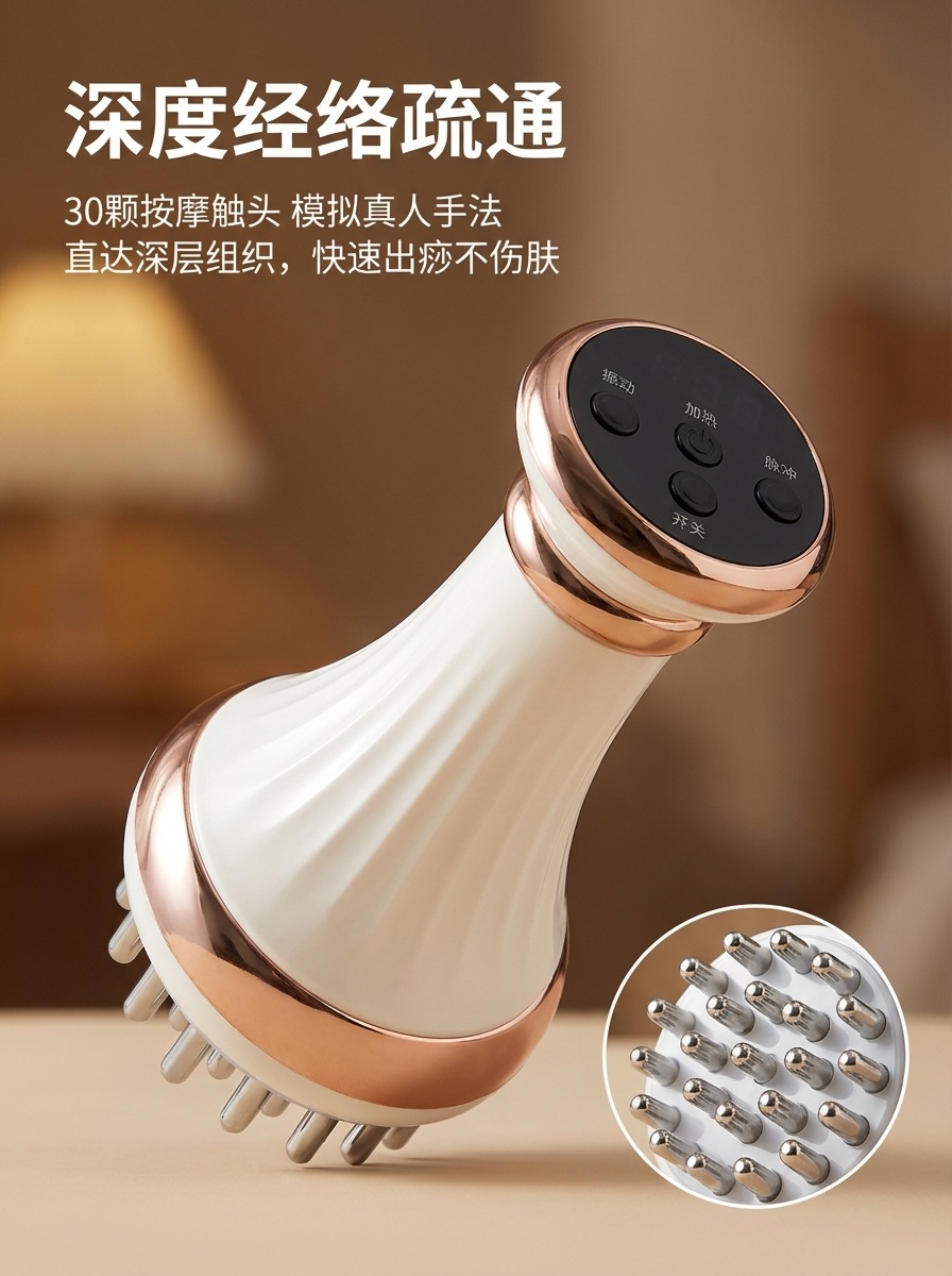 电动经络刷智能肩颈按摩刮痧红光热腹部疏通腿部全身通用刮痧仪 English | 投诉