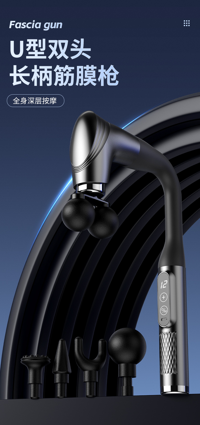 跨境筋膜枪家用弯头长柄颈椎腰背部腿部多功能颈椎放松肌肉按摩器 English | 投诉