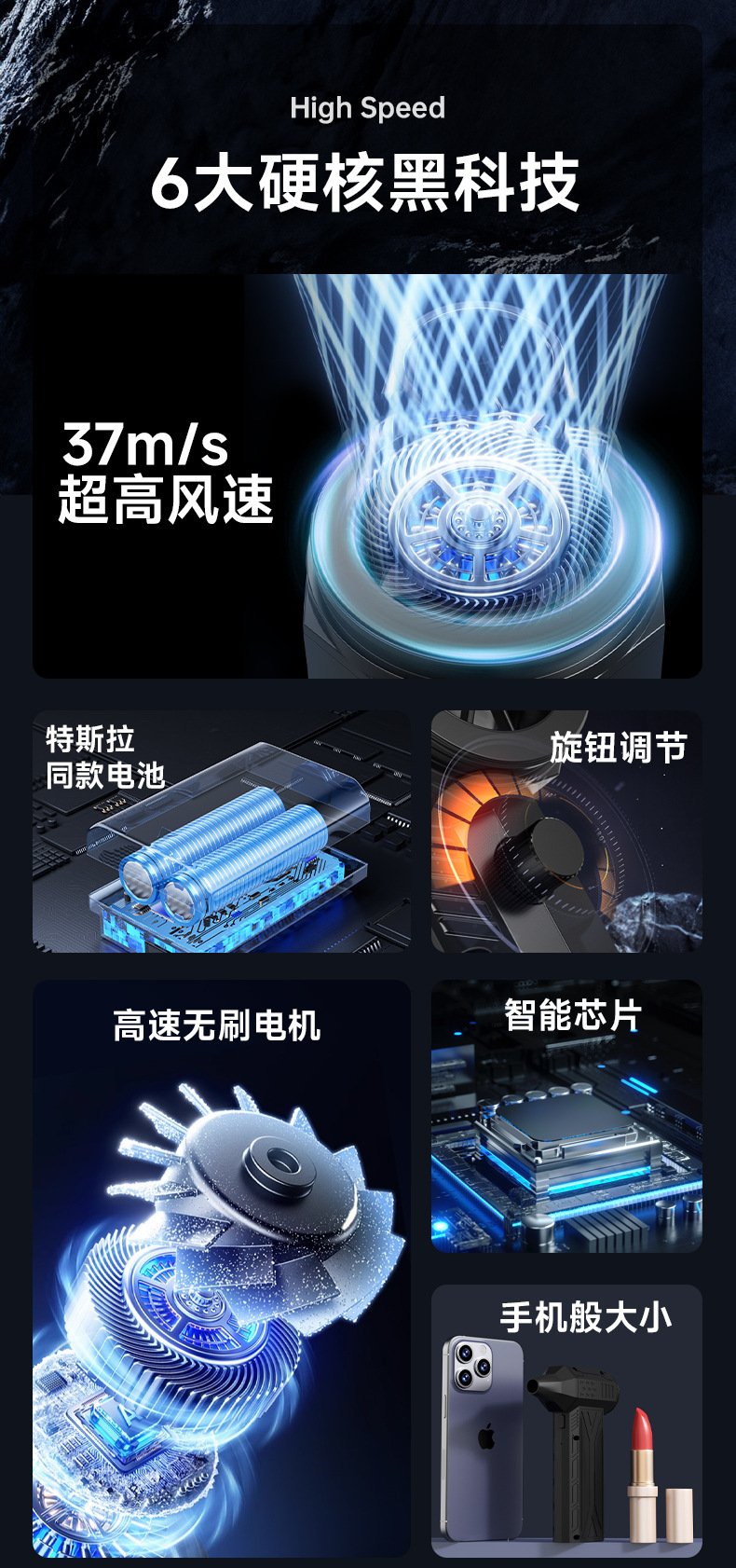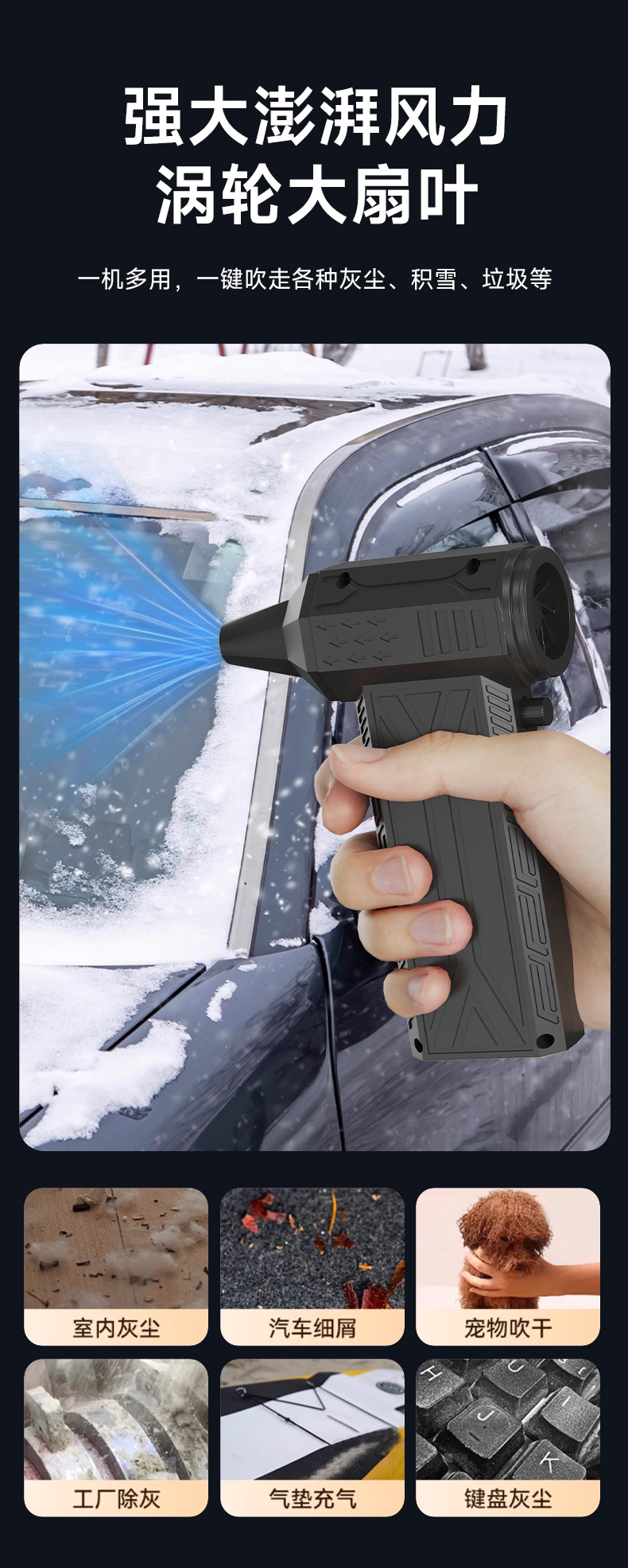 跨境暴力风扇车载吸尘器涡轮手持高速风扇高速无刷电机便携吹尘器 English | 投诉