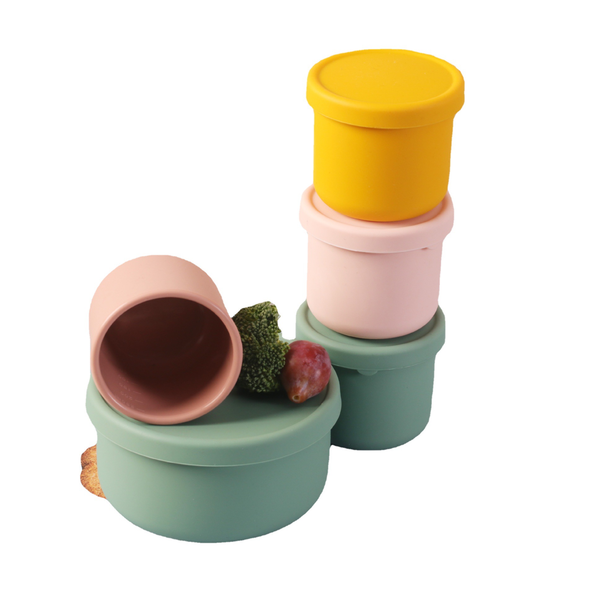 圆形携带饭盒微波炉可加热冷藏硅胶密封保鲜盒冰箱食品级便当盒
