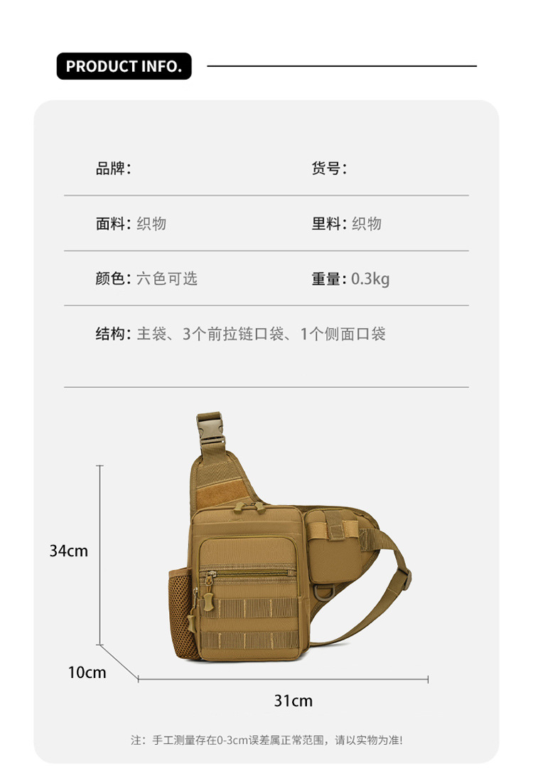 户外战术胸前包路亚包大容量百搭休闲单肩包轻便运动骑行斜挎包 投诉