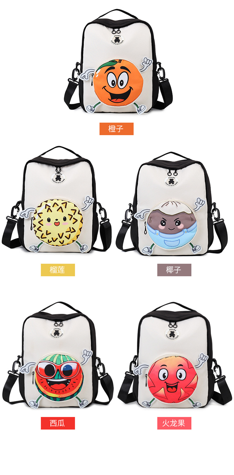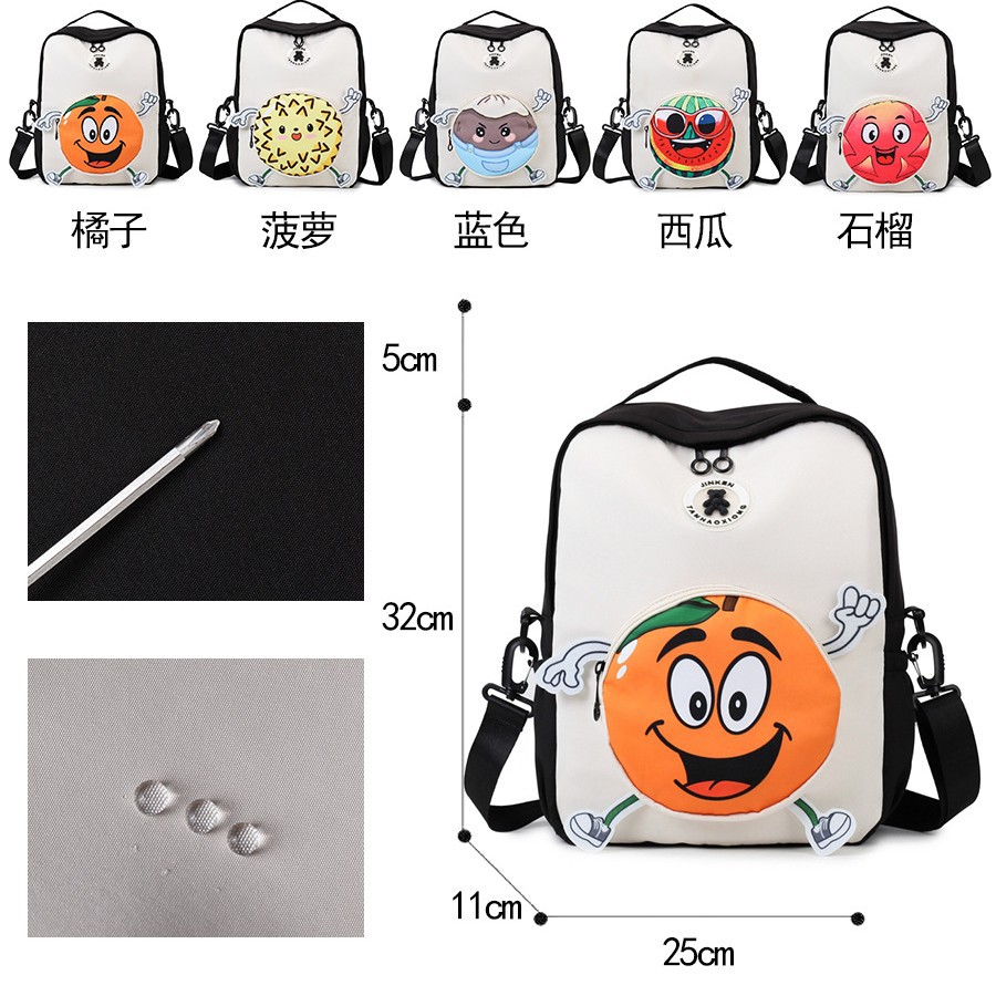 材质: 牛津布 功能: 耐磨 里料质地: 涤纶 皮质特征: 其它 容纳电脑尺寸: 12英寸 容量: 20-35L 适用性别: 中性/男女均可 品牌: 其他 颜色: 橙子,榴莲,椰子,西瓜,火龙果 适用场景: 日常搭配 风格: 街头潮流 上市年份季节: 2025夏季 货号: J985 图案: 水果 流行元素: 印花,撞色 背负系统: 弧形肩带 有可授权的自有品牌: 否 重量: 0.6 kg/个