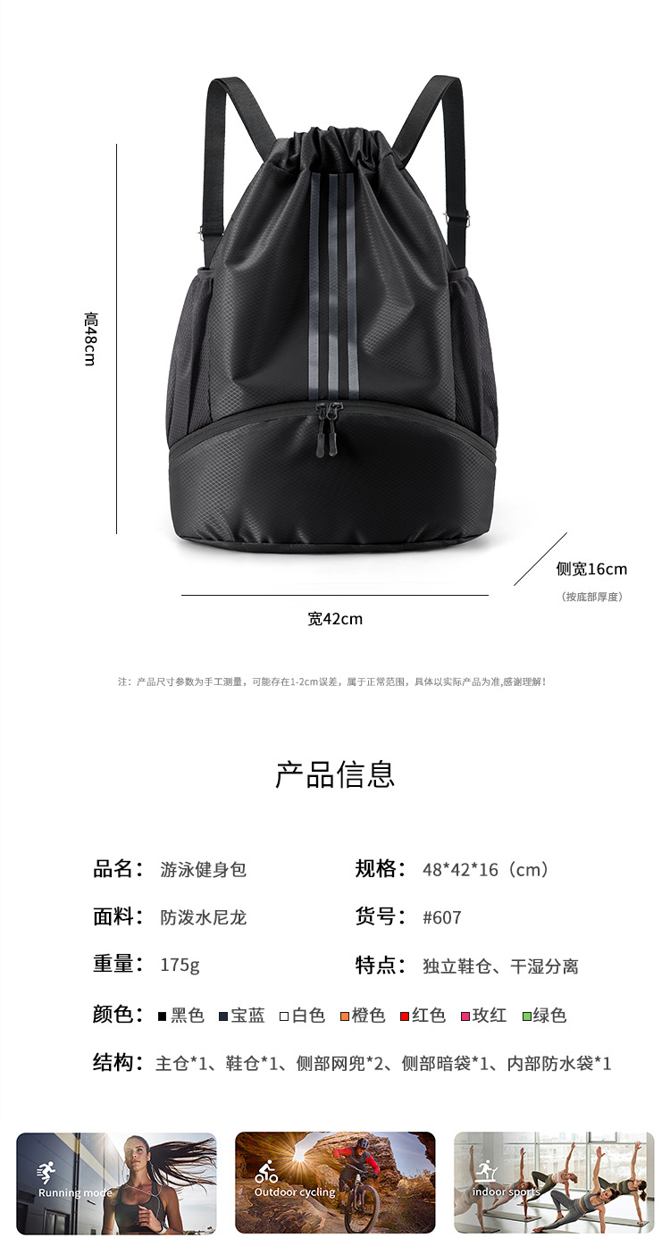 新款抽绳双肩背包游泳健身包户外轻便大容量休闲旅行包运动篮球包 投诉