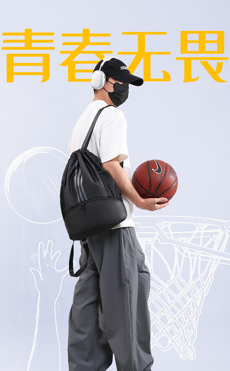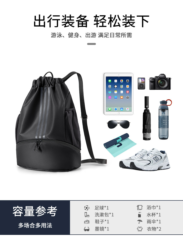 新款抽绳双肩背包游泳健身包户外轻便大容量休闲旅行包运动篮球包