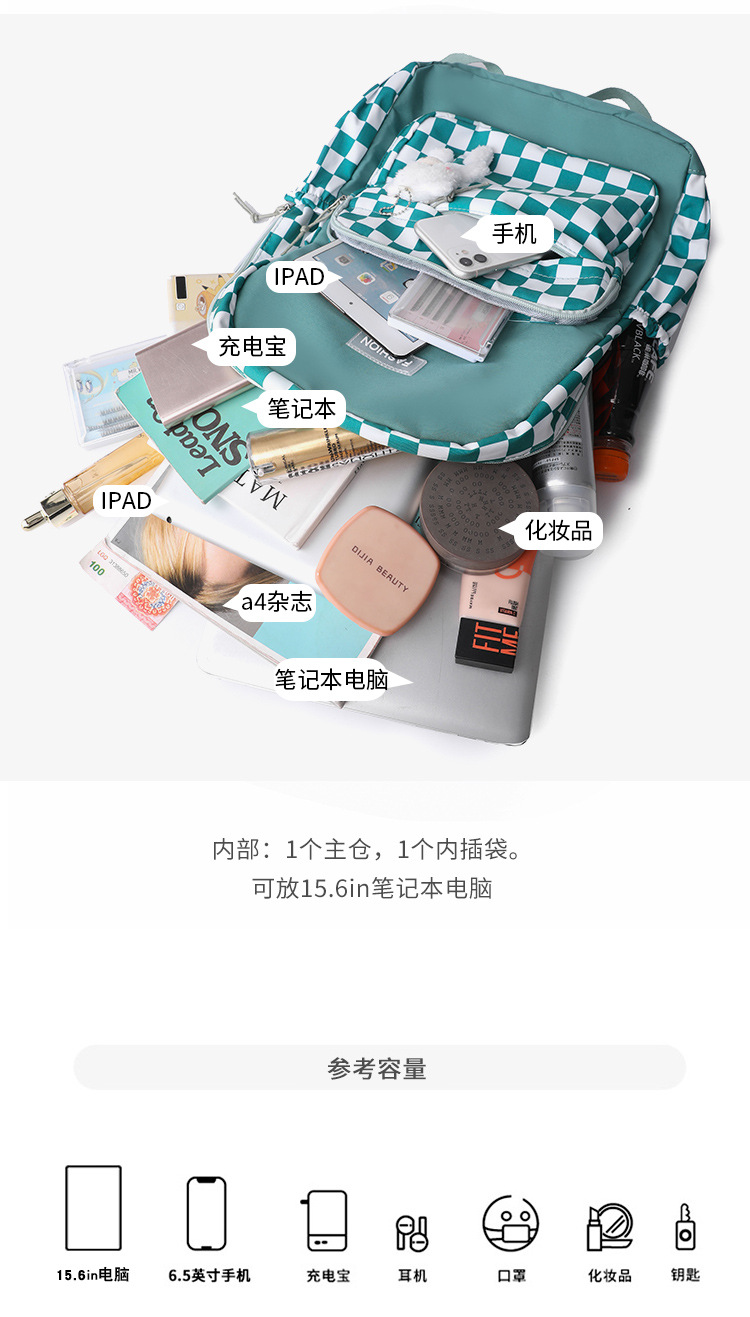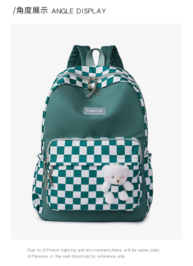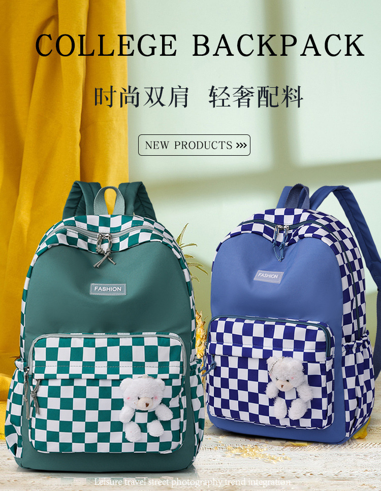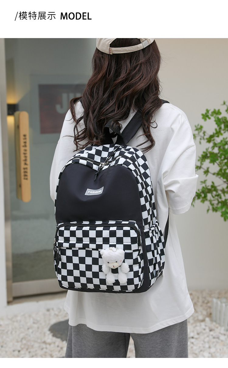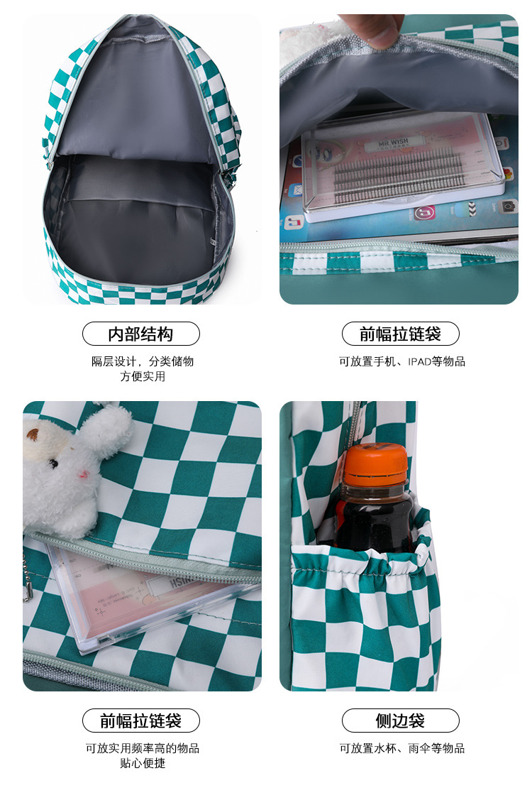 双肩包学生新款2025夏季清新棋盘格书包潮流简约格子校园风背包女 投诉