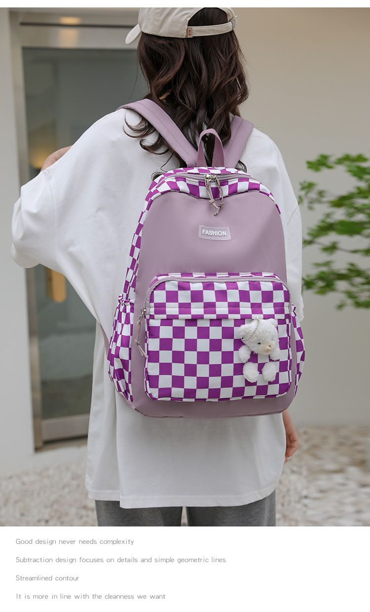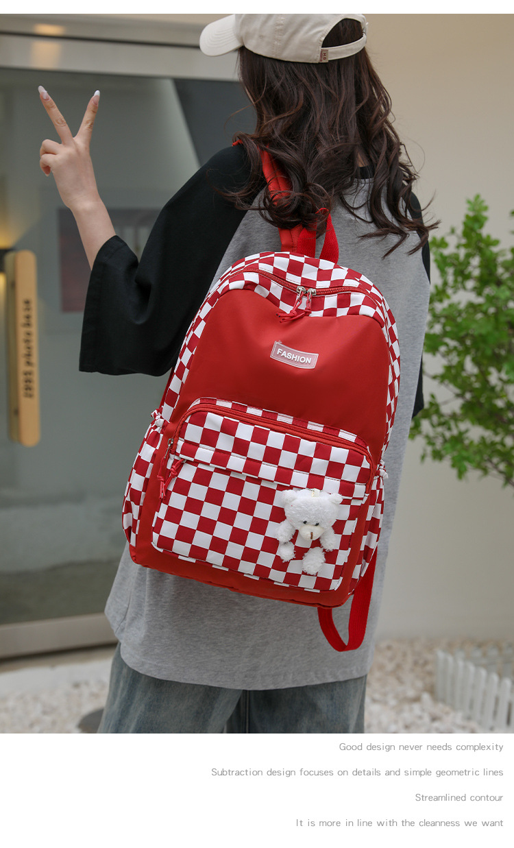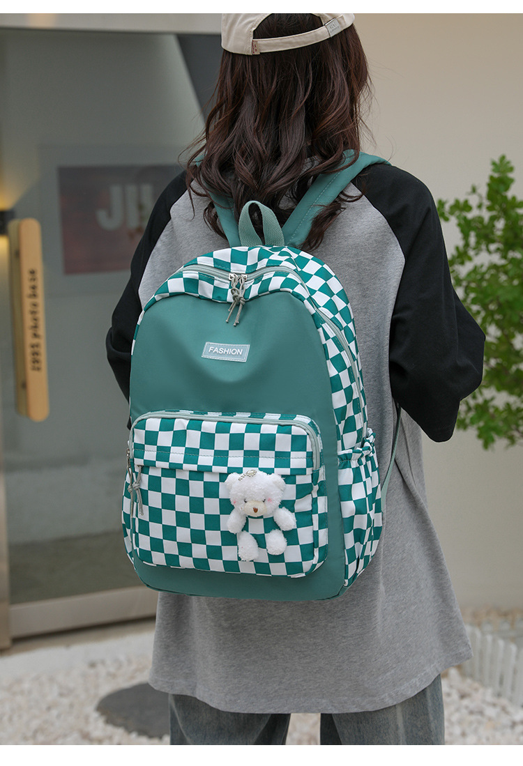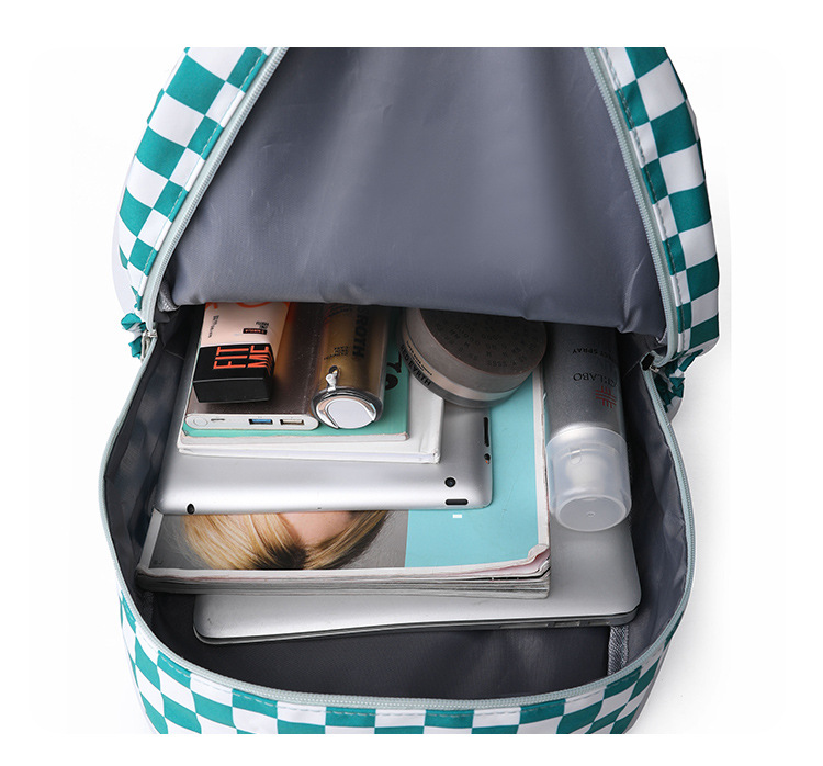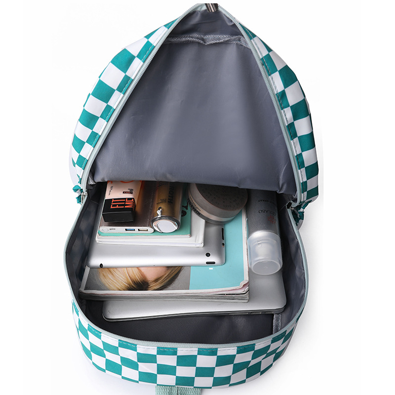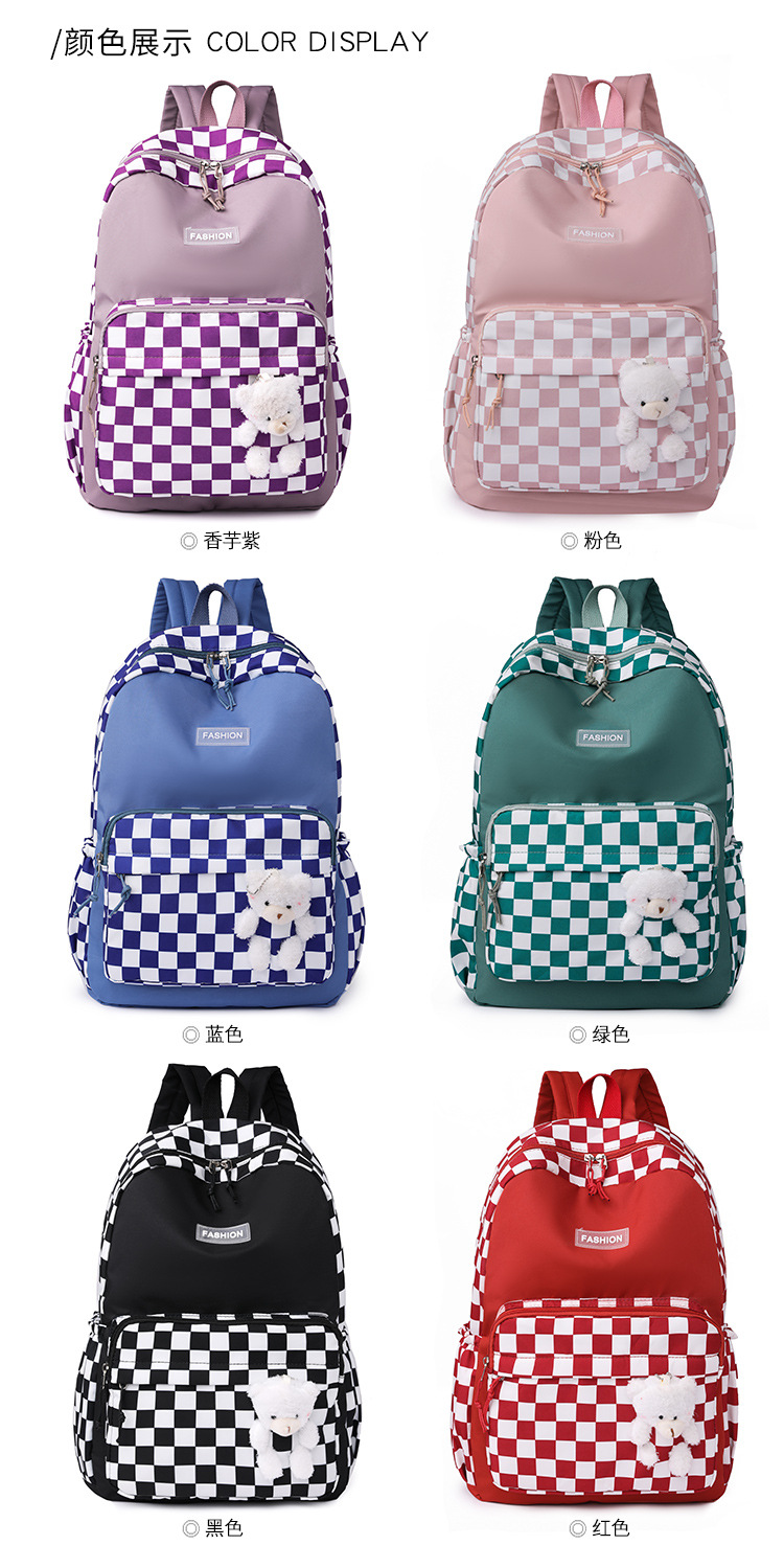 双肩包学生新款2025夏季清新棋盘格书包潮流简约格子校园风背包女 投诉