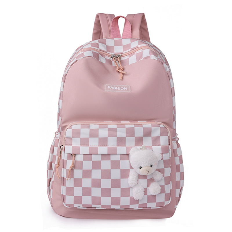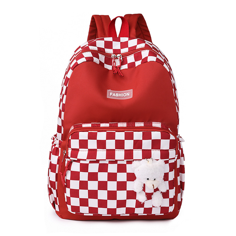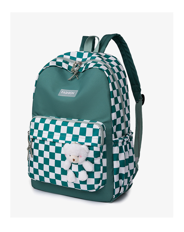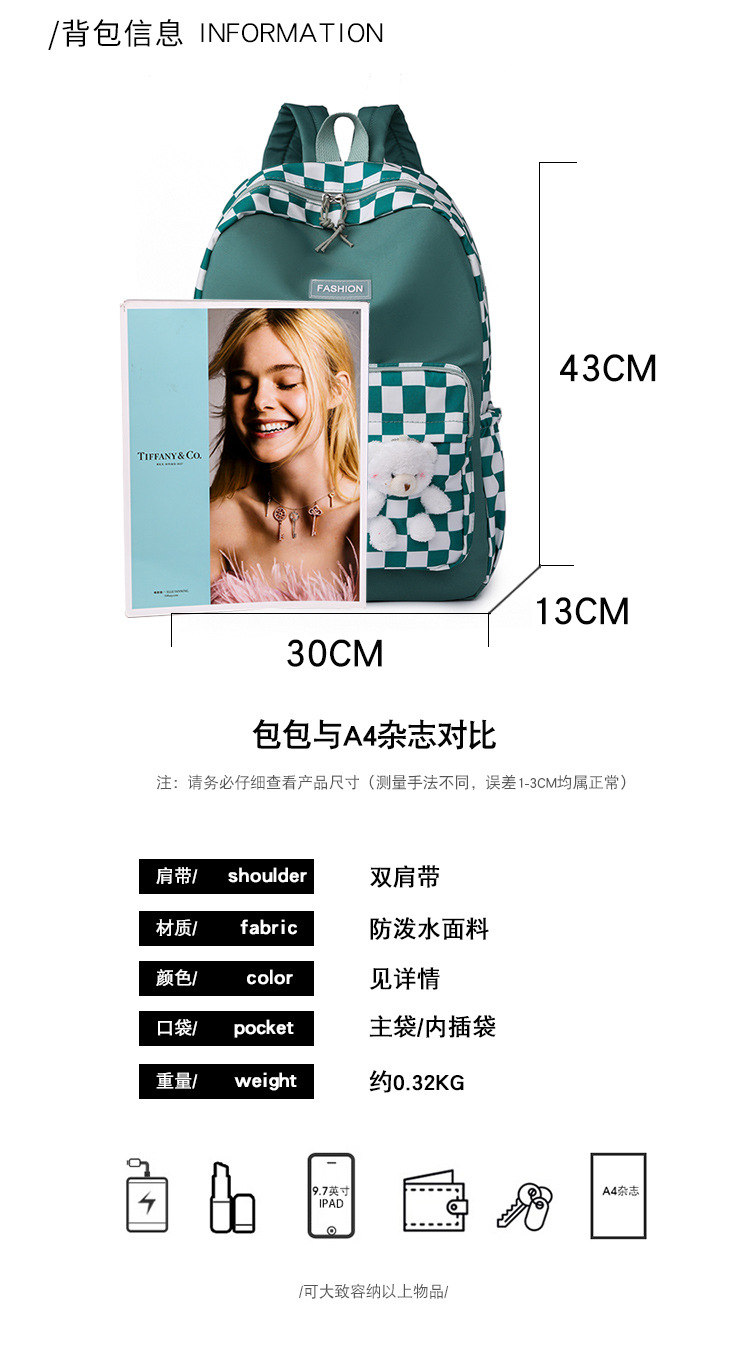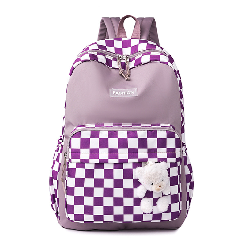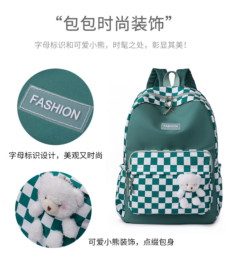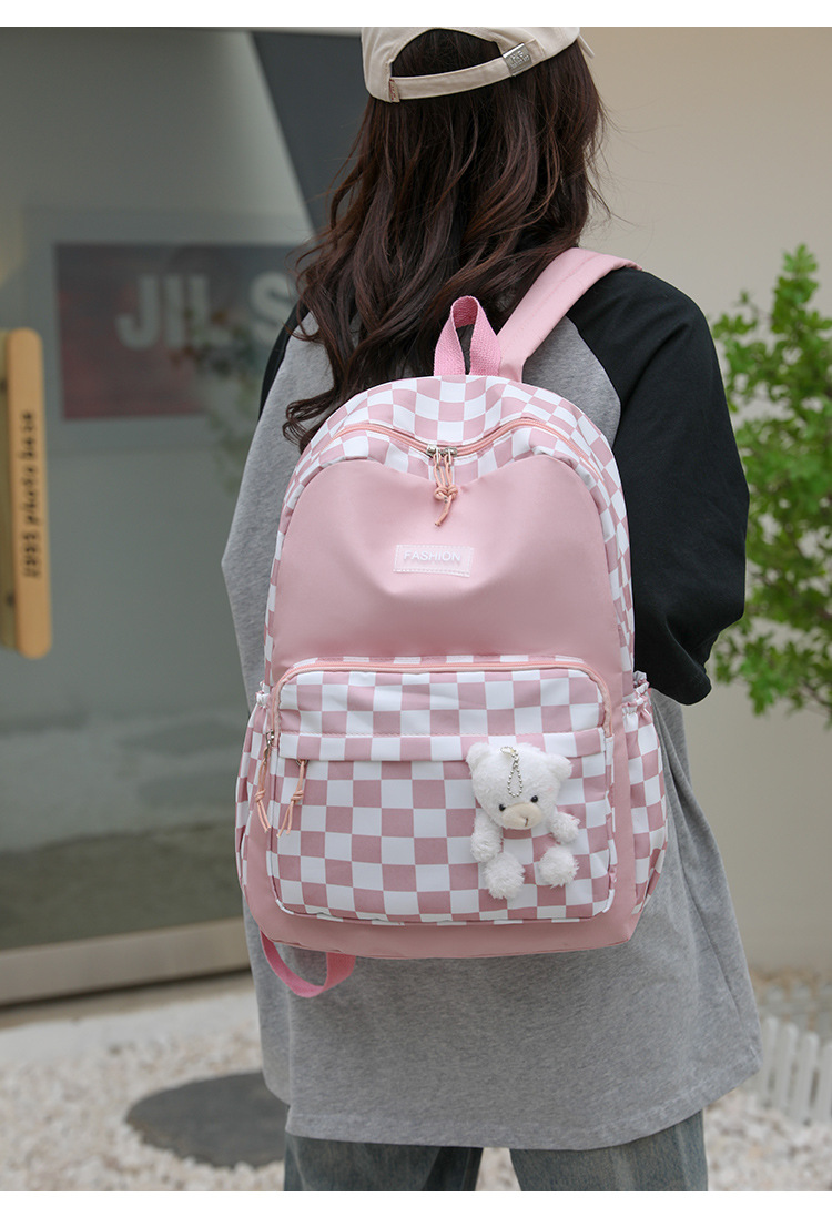 双肩包学生新款2025夏季清新棋盘格书包潮流简约格子校园风背包女 投诉
