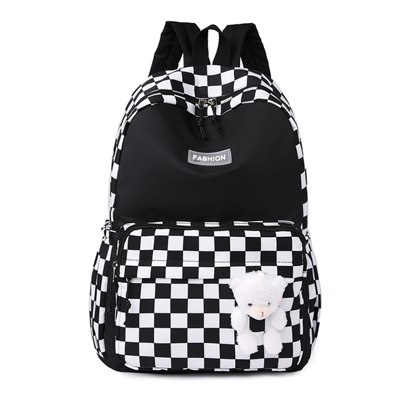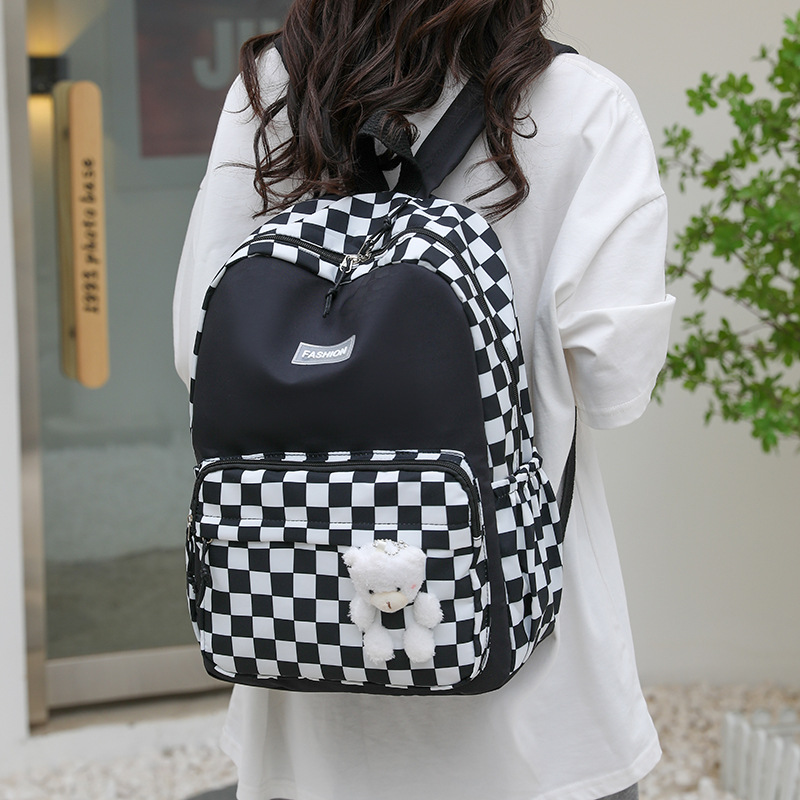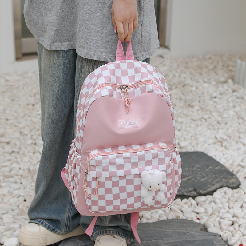 双肩包学生新款2025夏季清新棋盘格书包潮流简约格子校园风背包女