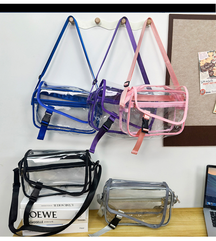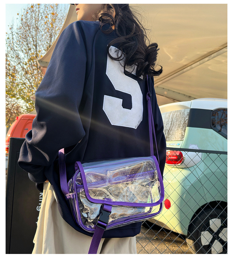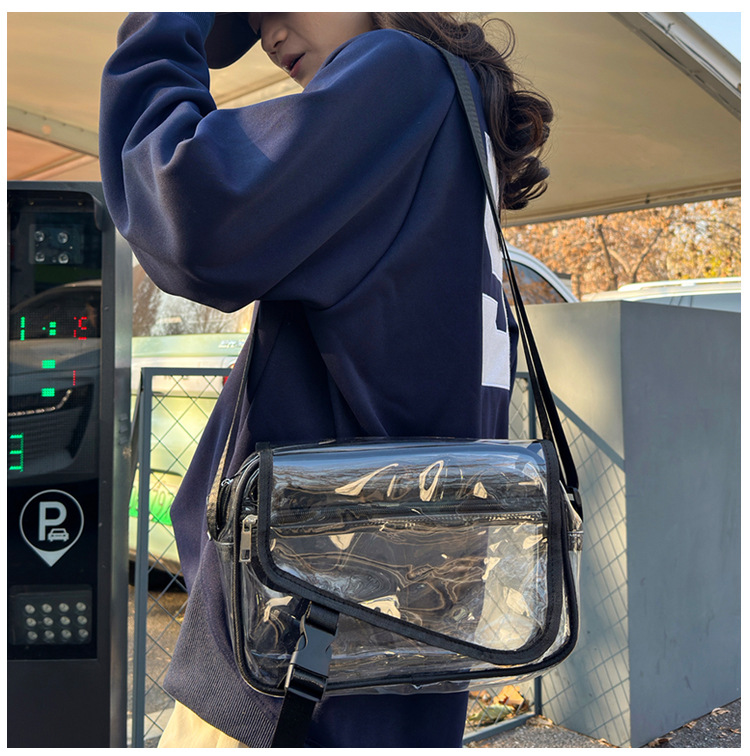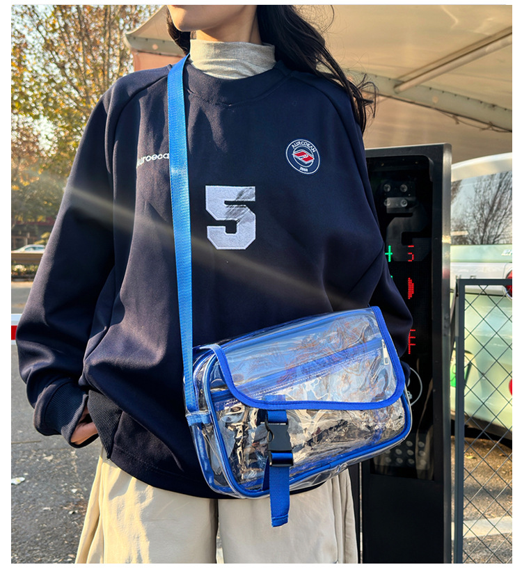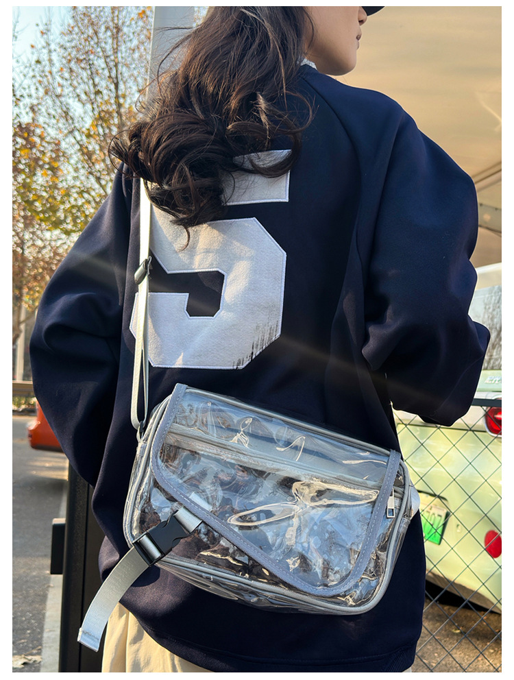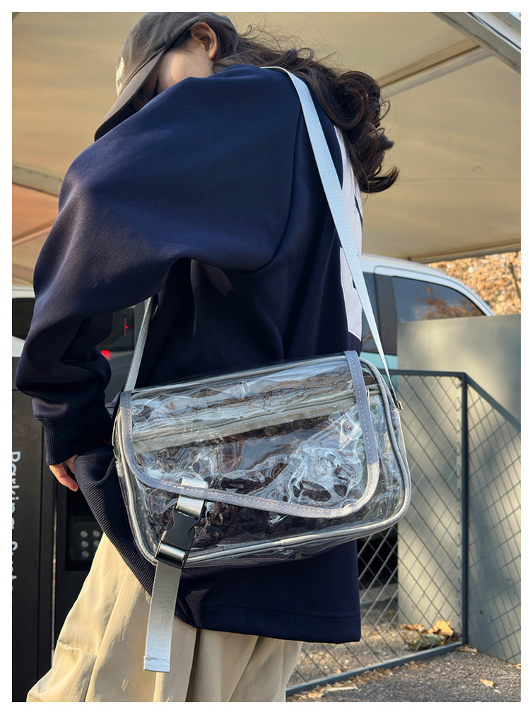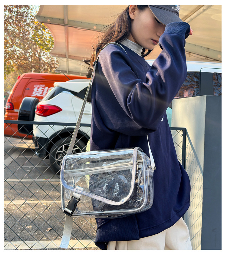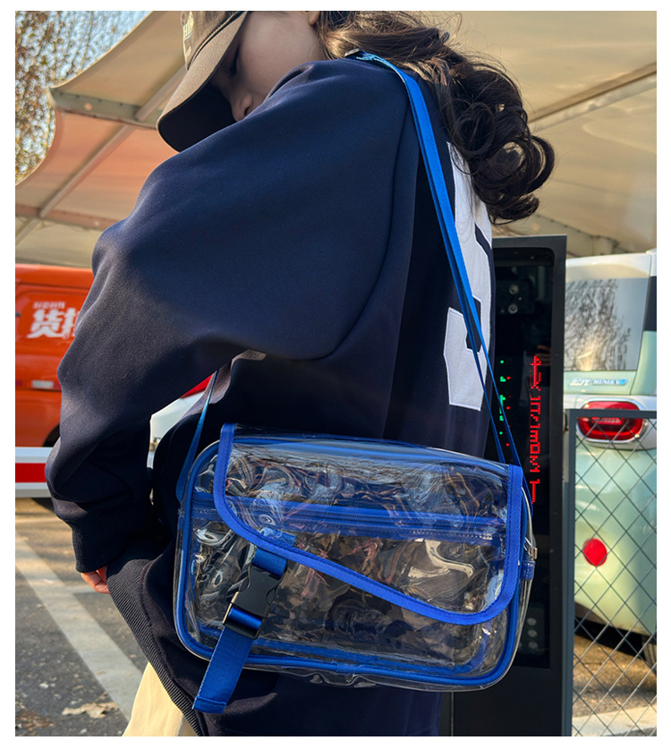 透明斜挎包包女潮流ins小众个性背包时尚运动PVC果冻包休闲单肩包 投诉