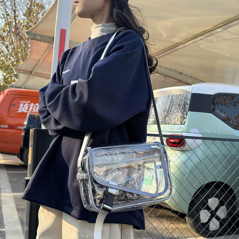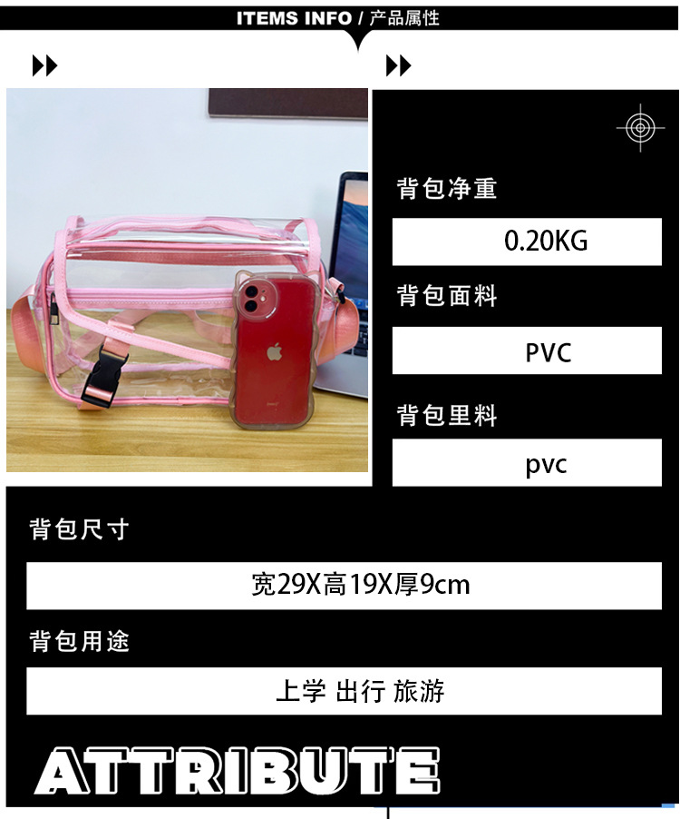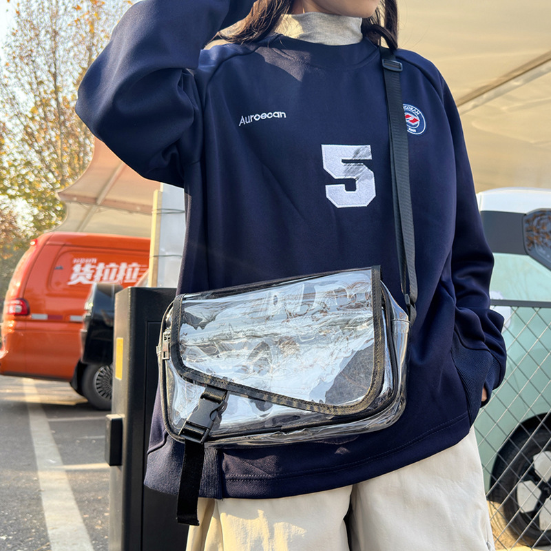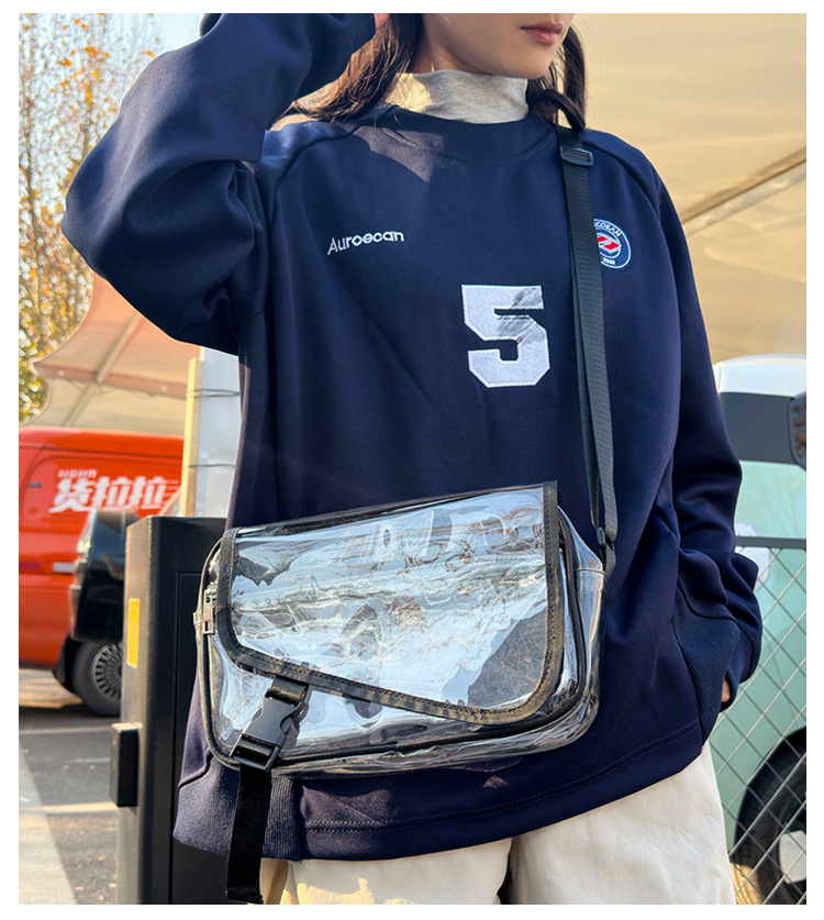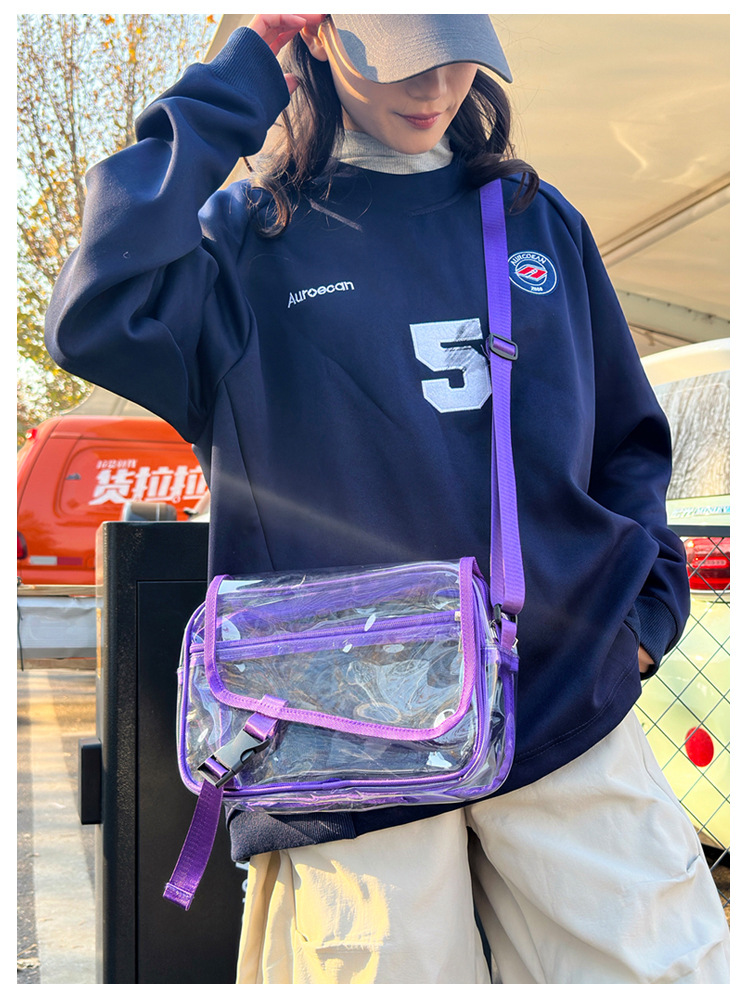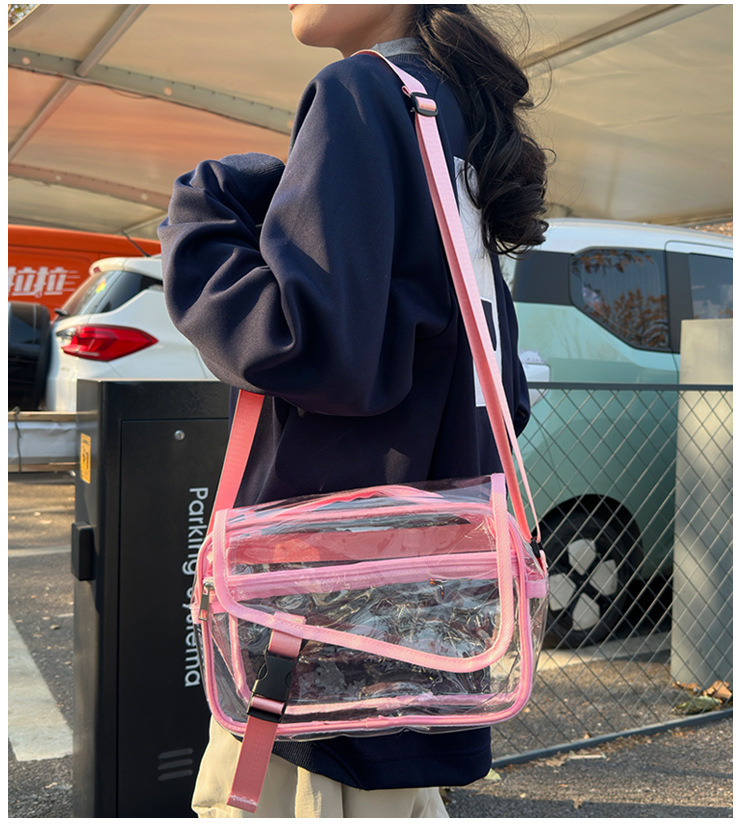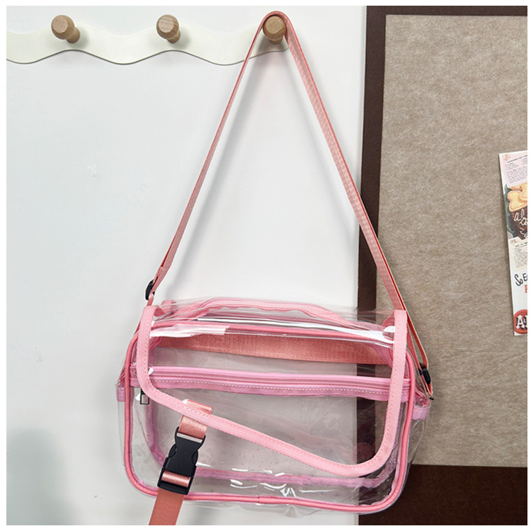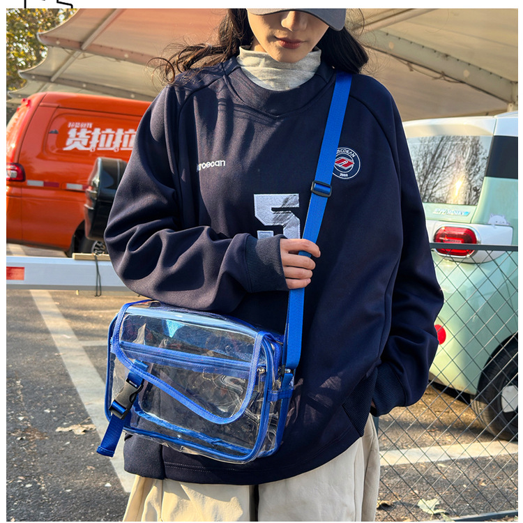 透明斜挎包包女潮流ins小众个性背包时尚运动PVC果冻包休闲单肩包 投诉
