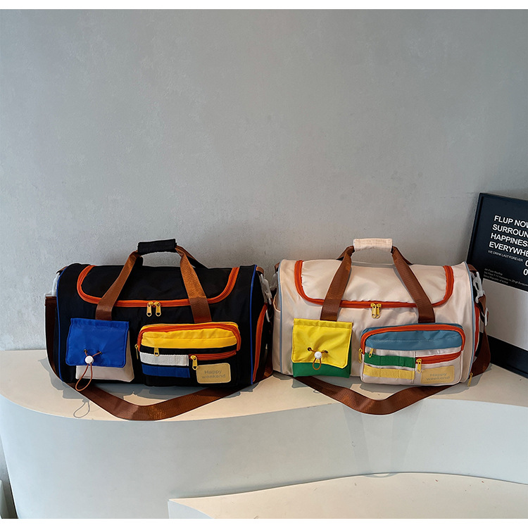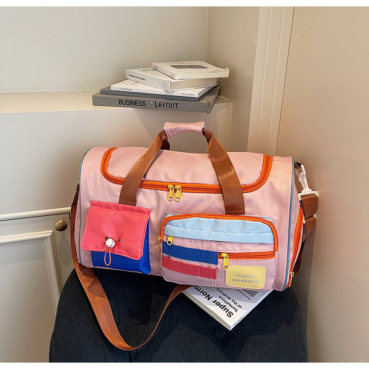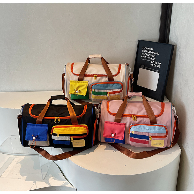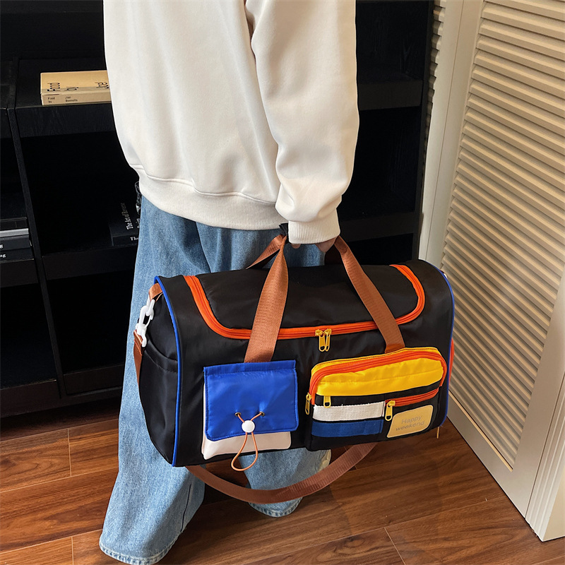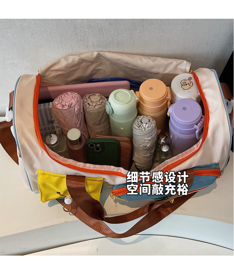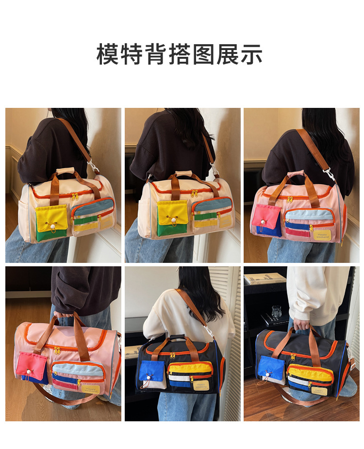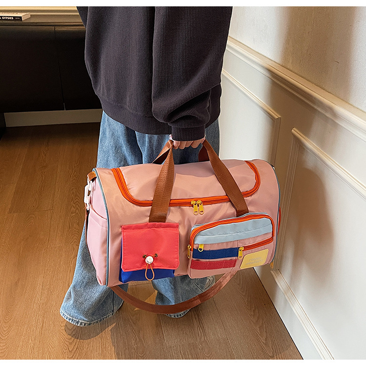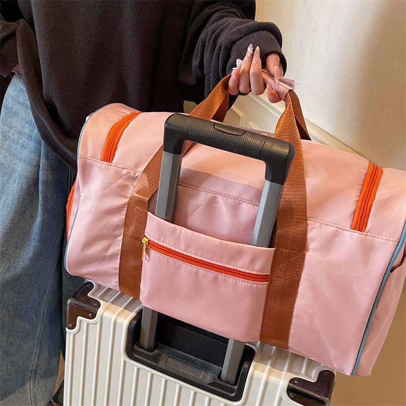 男女时尚撞色大容量旅行包多巴胺运动健身包游泳瑜伽包登机行李包