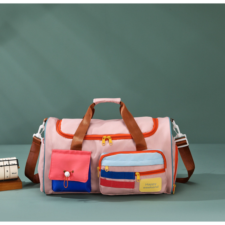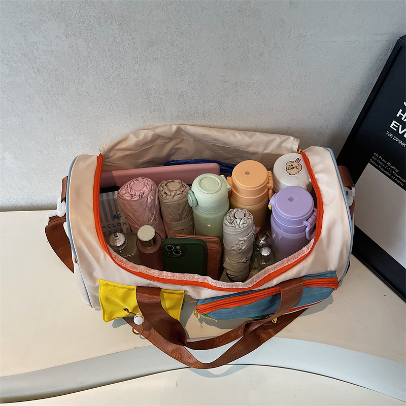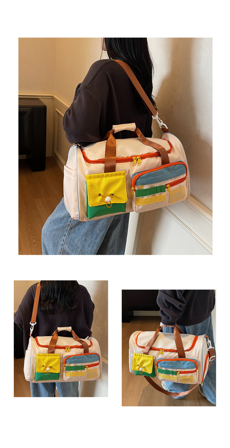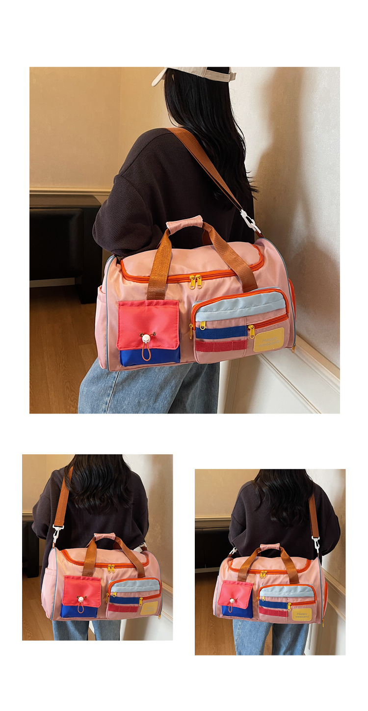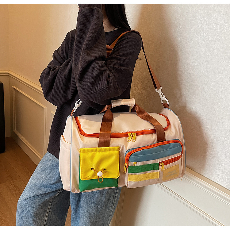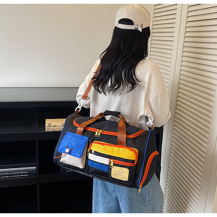 男女时尚撞色大容量旅行包多巴胺运动健身包游泳瑜伽包登机行李包